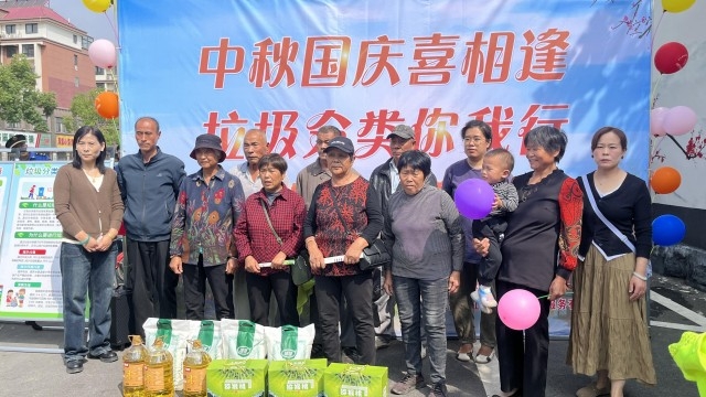 活动现场还为三堡社区垃圾分类积分排名前10名的家庭准备了礼品,家庭代表们走上台前,脸上洋溢着自豪和喜悦。