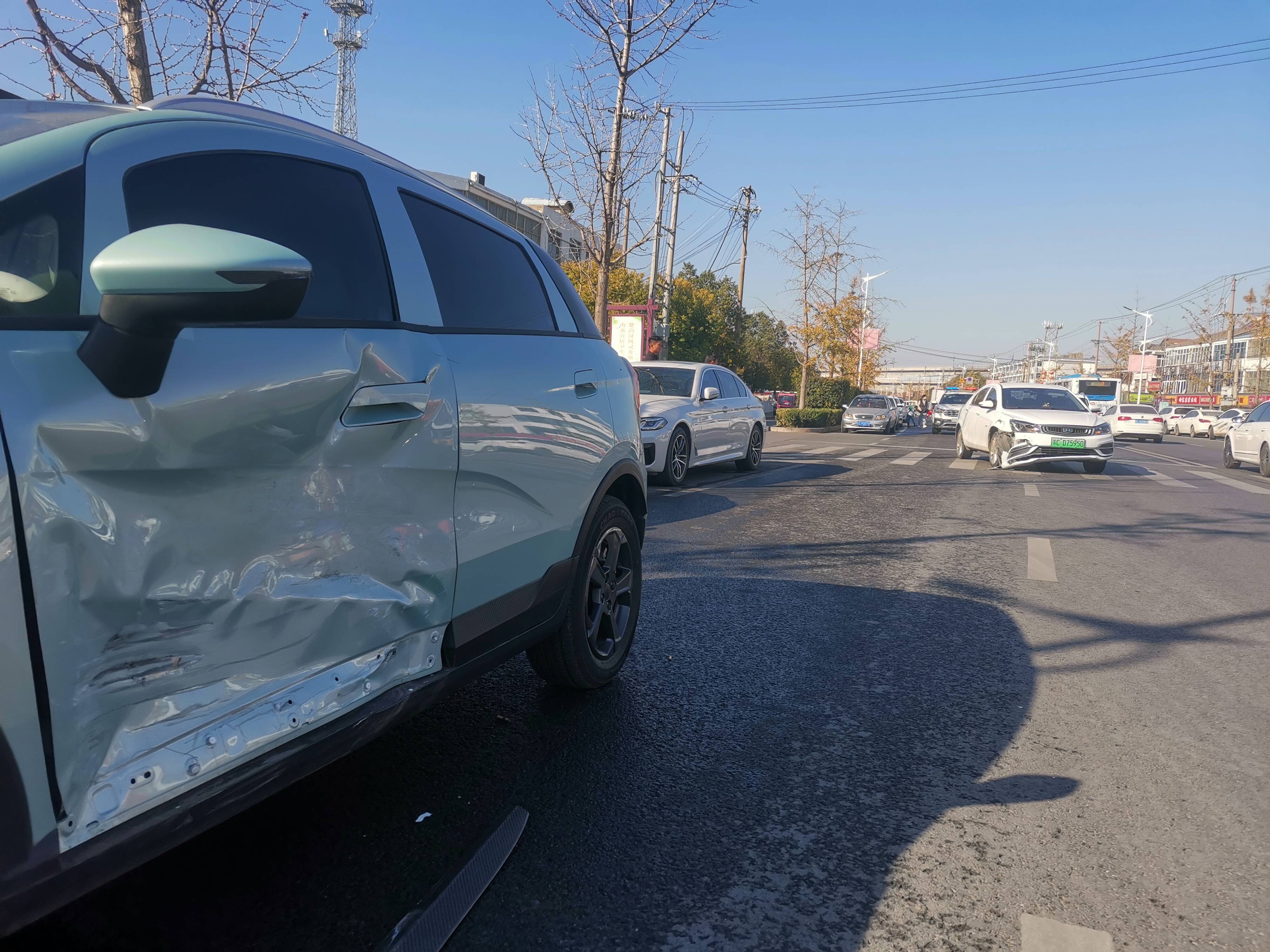 2023年11月18日早上8时许,铜山交警大队大彭中队民警接110指令,在辖区彭祖大街发生一起交通事故,两车均有损坏。
