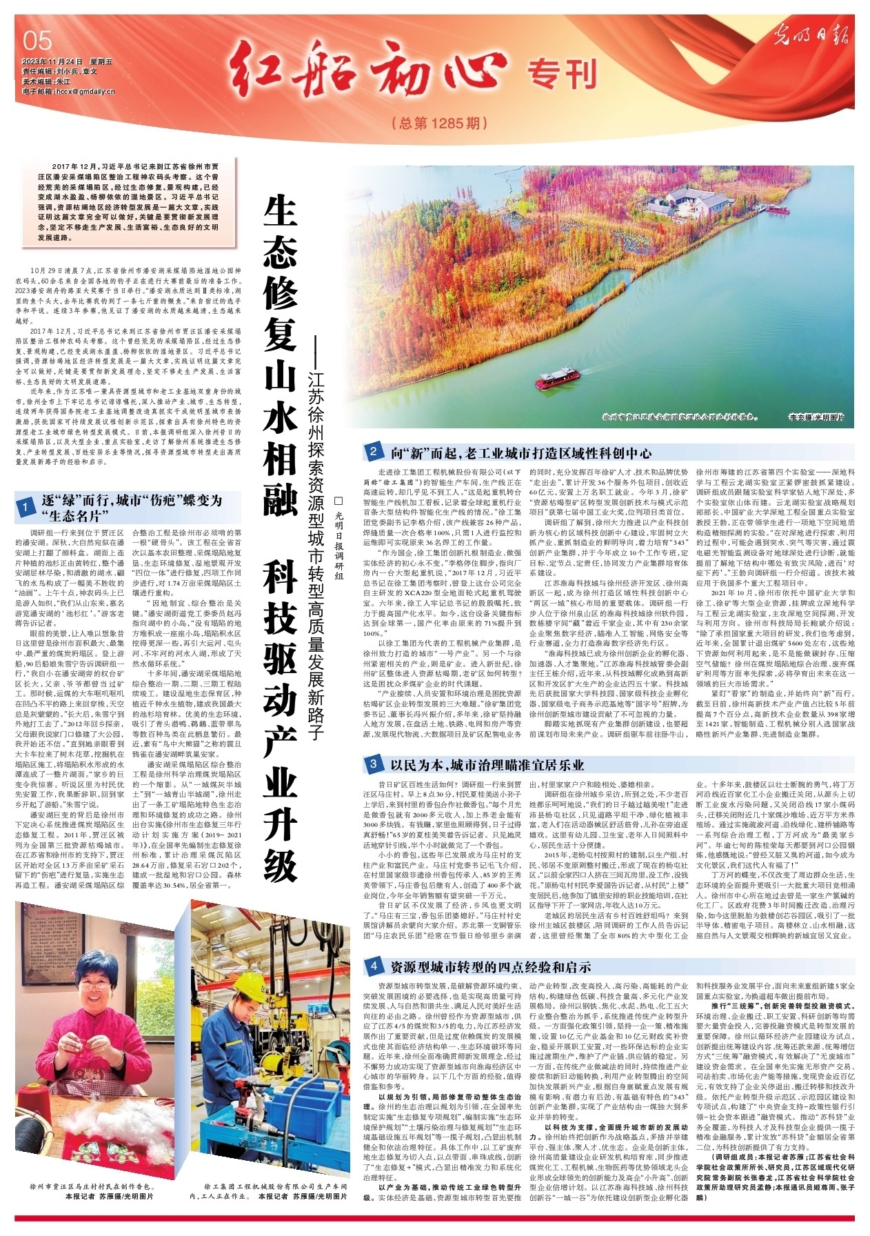 近年来,作为江苏唯一兼具资源型城市和老工业基地双重身份的城市,徐州全市上下牢记总书记谆谆嘱托,深入推动产业、城市、生态转型,连续两年获得国务院老工业基地调整改造真抓实干成效明显城市表扬激励,获批国家可持续发展议程创新示范区,探索出具有徐州特色的资源型老工业城市绿色转型发展模式。日前,本报调研组深入徐州昔日的采煤塌陷区,以及大型企业、重点实验室,走访了解徐州系统推进生态修复、产业转型发展、百姓安居乐业等情况,探寻资源型城市转型走出高质量发展新路子的经验和启示。