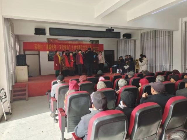 蒋楼村新时代文明实践站自发组织的文艺汇演在文化大礼堂正式开演,蒋楼村及周边村民自发组织、自主编排创作十多个节目,演出节目包含乐器合奏、歌曲、戏剧等,涉及乡村振兴、移风易俗、红色歌曲等众多题材,内容健康向上,紧扣时代主题,以贴近生活、来源生活的表现形式,打造“家门口”的文化盛宴。这次文艺汇演让村民当“主角”,村民从“围观者”变成“参与者”,点燃村民们的表演热情、满足他们的文艺追求。