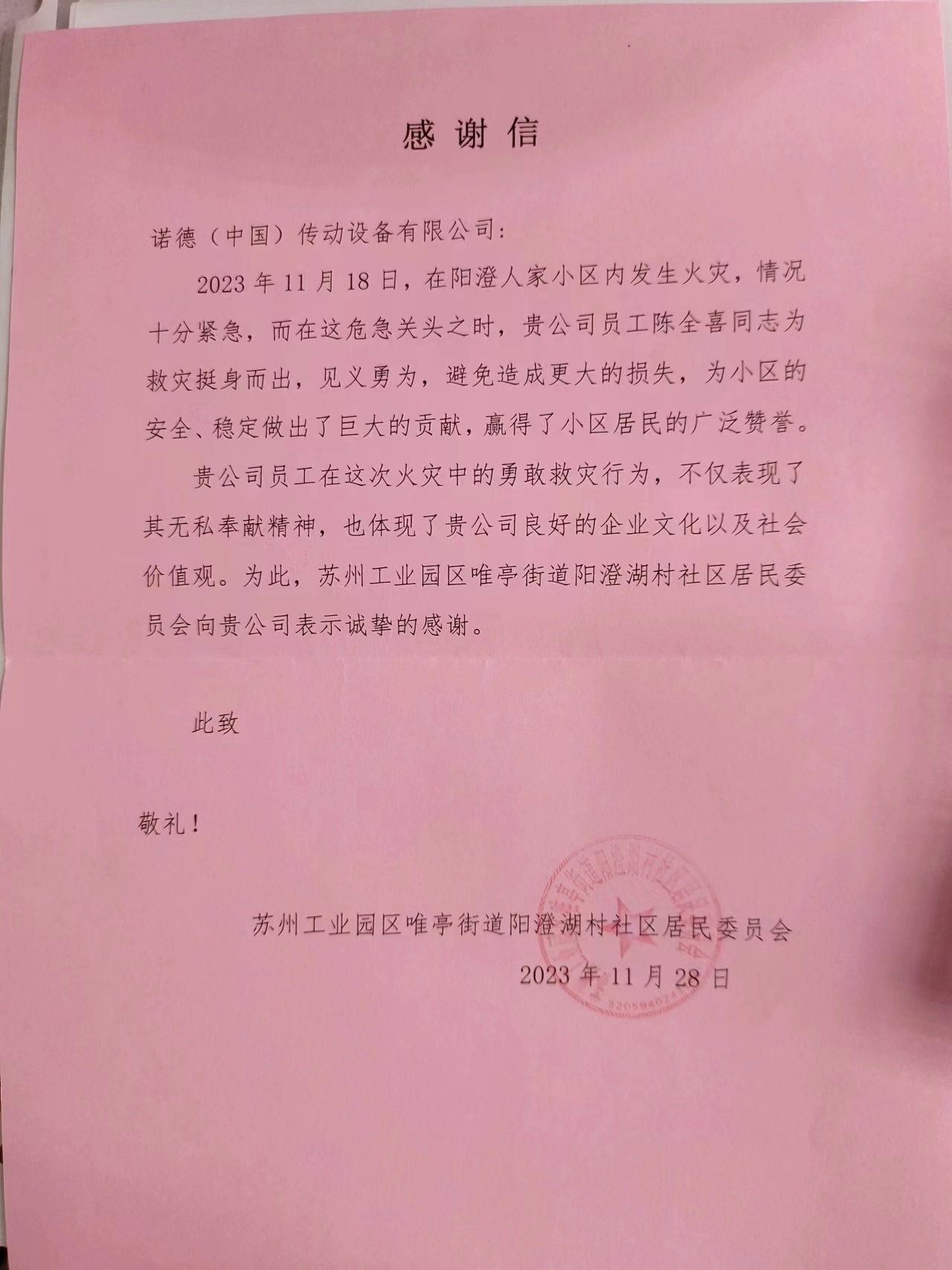 为了表彰陈全喜和刘继权的英勇行为,苏州阳澄湖村社区向他们颁发了“救火英雄”荣誉证书,并送上了感谢和慰问。面对社区的表彰和邻里的称赞,陈全喜直言这是对他莫大的鼓励和肯定,表示会秉持初心,将见义勇为的精神继续发扬下去。