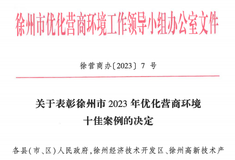 徐州市2023年营商环境十佳案例