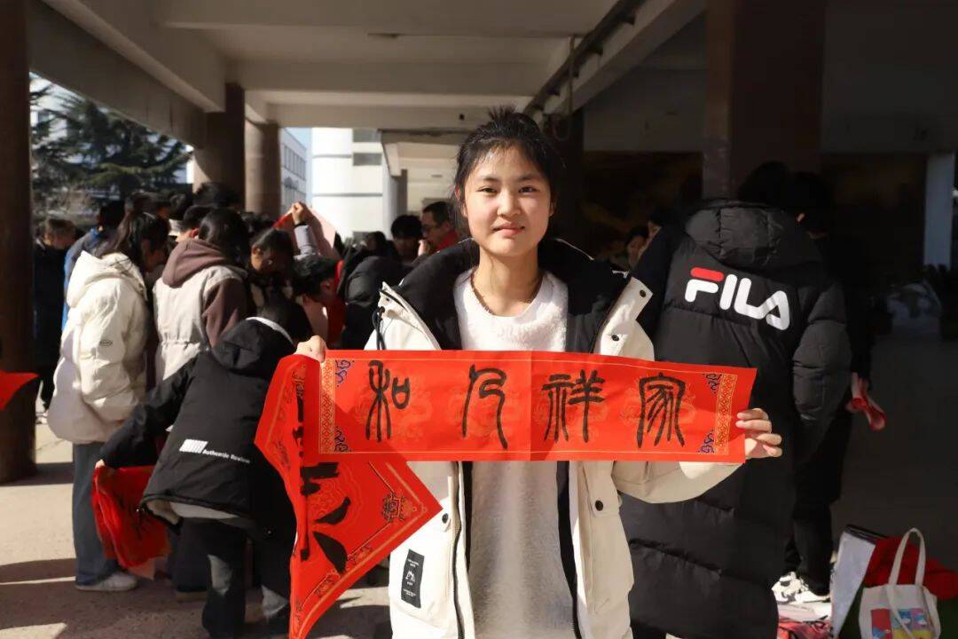 学生们接过心仪的春联时喜笑颜开,爱不释手。一幅幅春联字体或苍劲有力,或清秀自然,或洒脱俊逸,内容积极向上、喜庆祥和,饱含了茅中师生对新年美好的祝福和对幸福生活的向往。