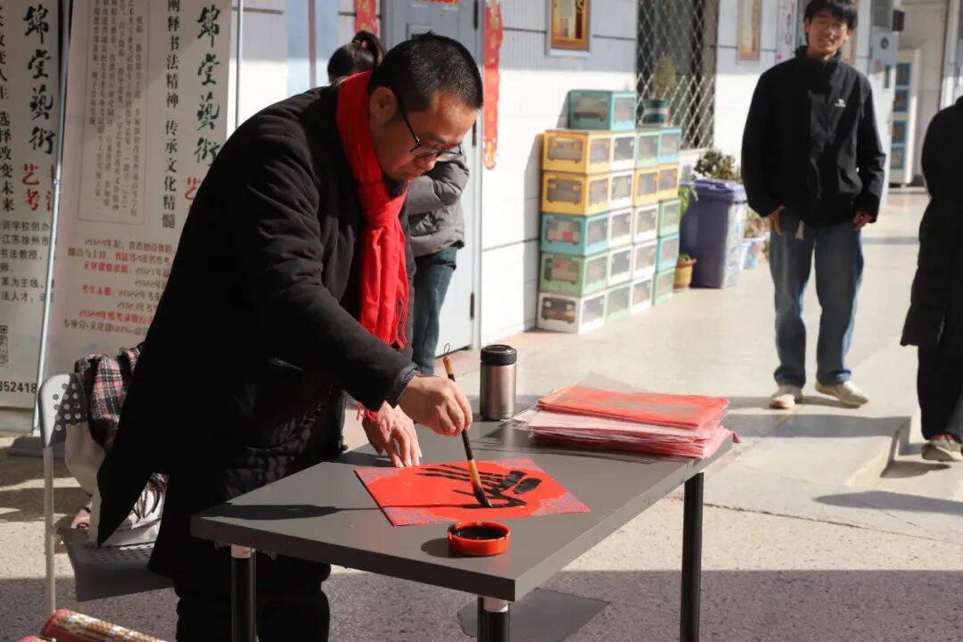师生们现场挥毫泼墨,写出一幅幅雄健有力、笔酣墨饱的春联,字里行间洋溢着辞旧迎新的喜悦和美好的祝福。