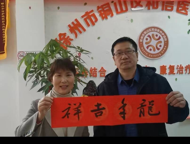 为了使老年人度过一个欢乐祥和的春节,构建社会主义和谐社会,在传统节日春节即将来临之际,由铜山区书法家协会、徐州市青年书法家协会主办的书写慰问活动邀请了知名书法家张大昕、李本刚、杨锦、乔龙泉等为铜山和信养老服务中心现场书写春联,为冬日铜山增加了浓浓春意。