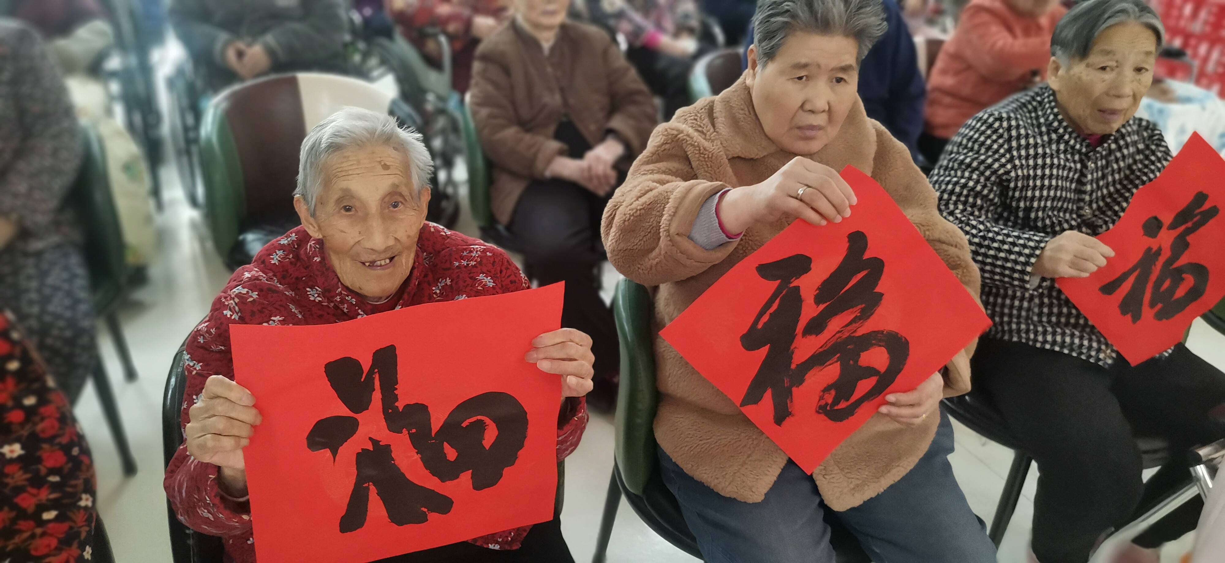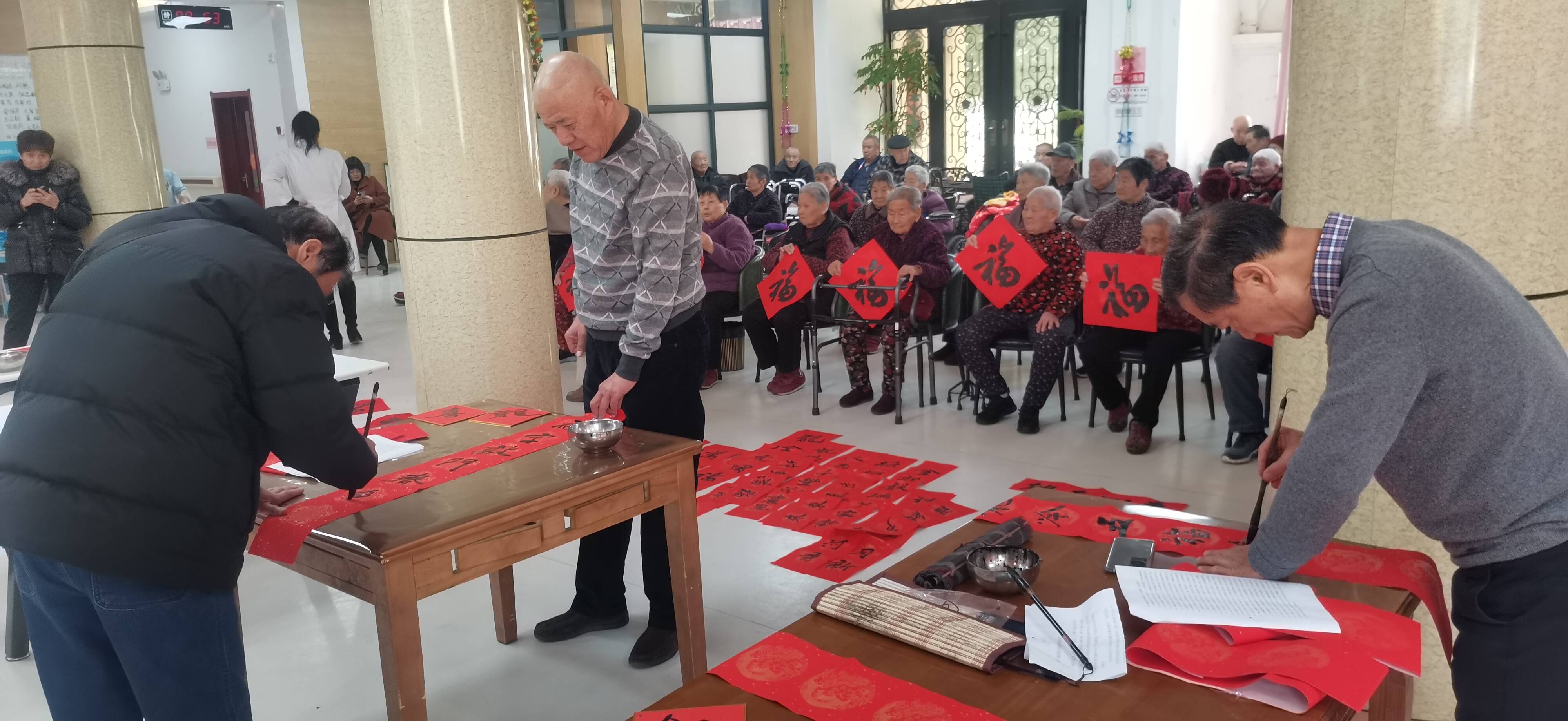 "爆竹声中一岁除,春风送暖入屠苏。千门万户瞳瞳日,总把新桃换旧符。"近日,在铜山区和信养老服务中心,一百多位八九十高龄的老人在大厅欢聚一堂,迎接前来书写春联送福的书法家们。老人们虽然步入耄耋之年,但依然精神矍铄,不时观看书法家的书写,不断与书法家们交流互动。