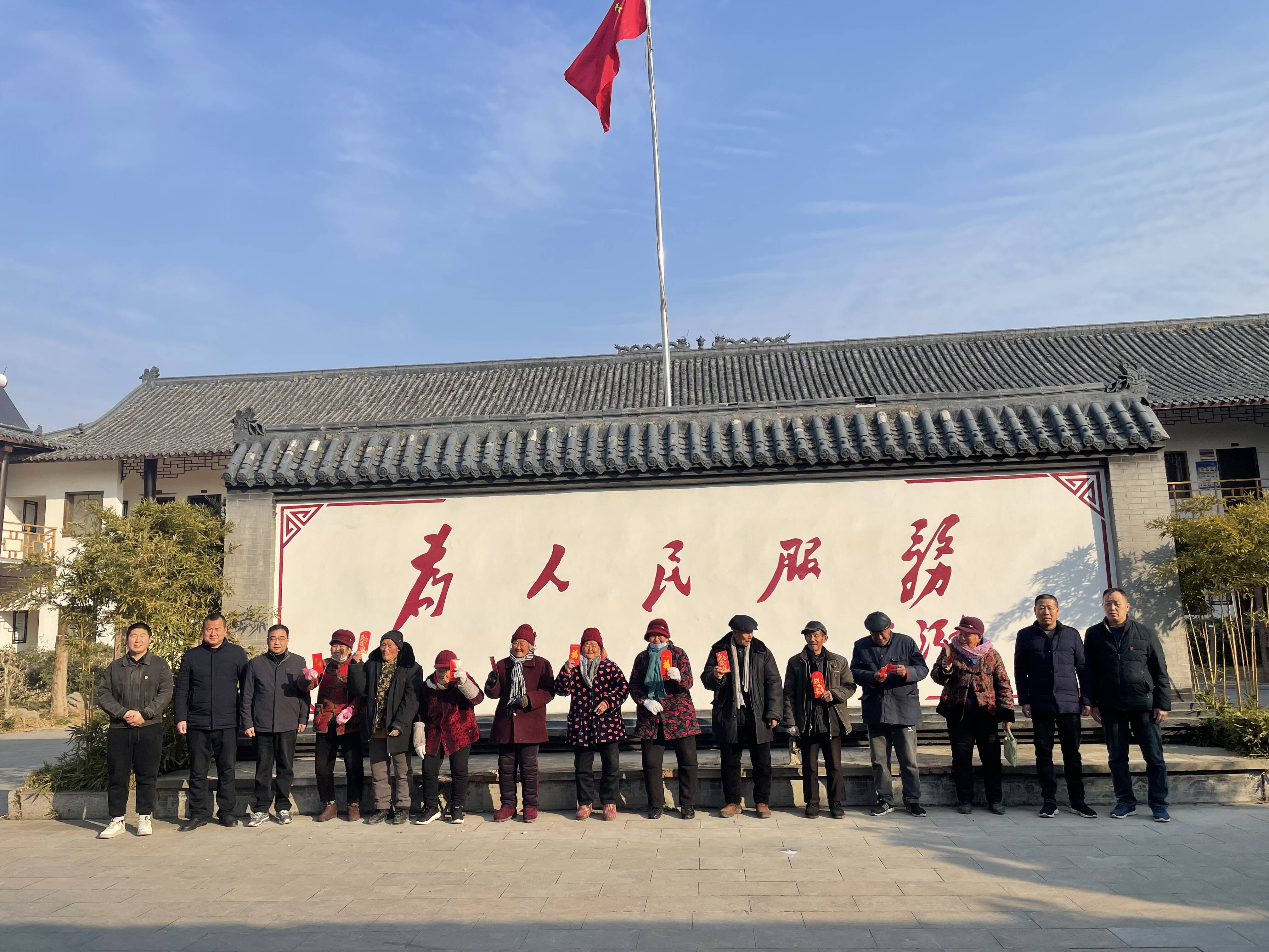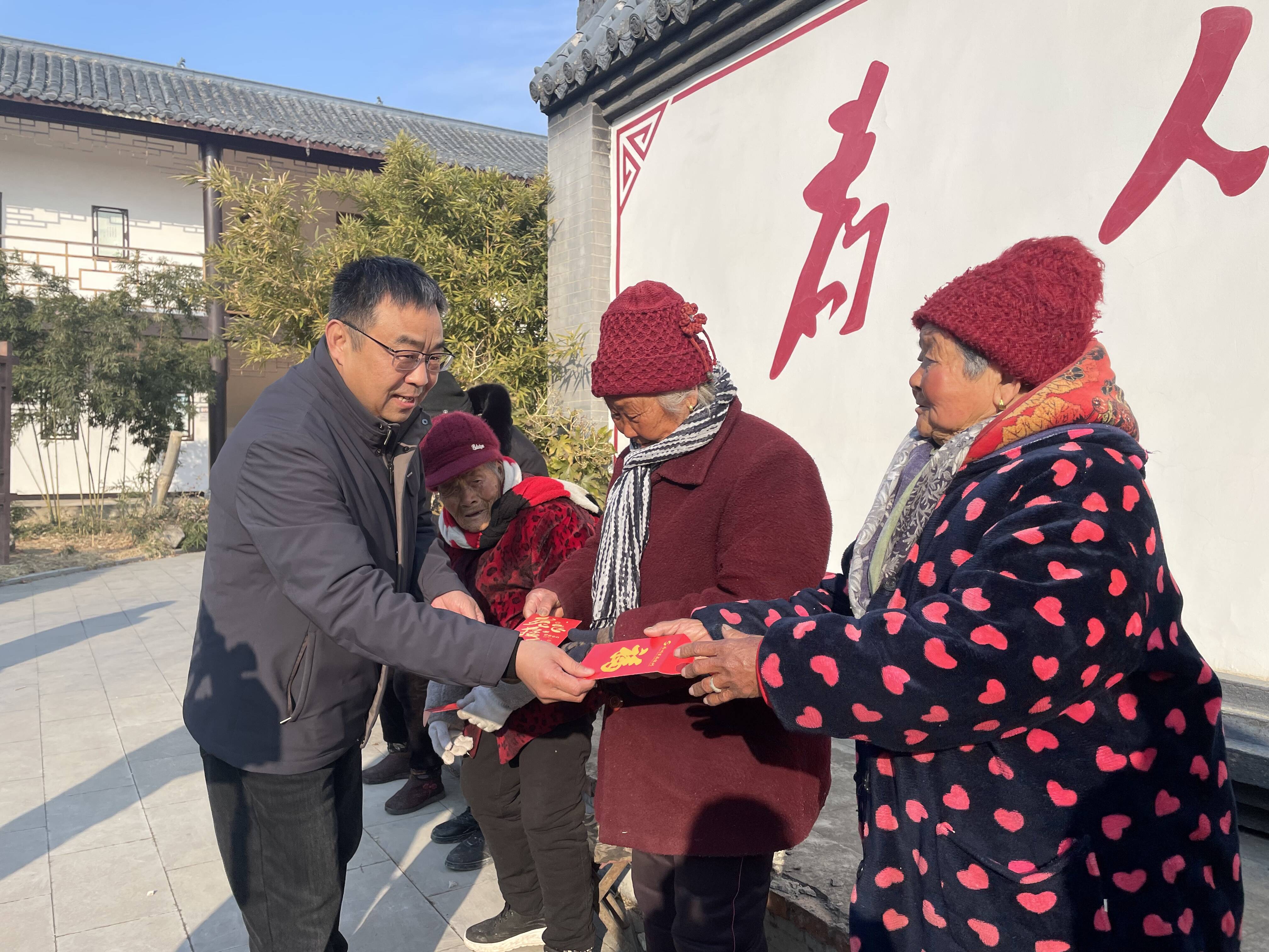 1月29日上午,爱心企业缮维石材城向新区街道榆庄村70岁以上老人发放新春慰问红包。这是该企业连续11年向村里70岁以上老人送去新春关怀。