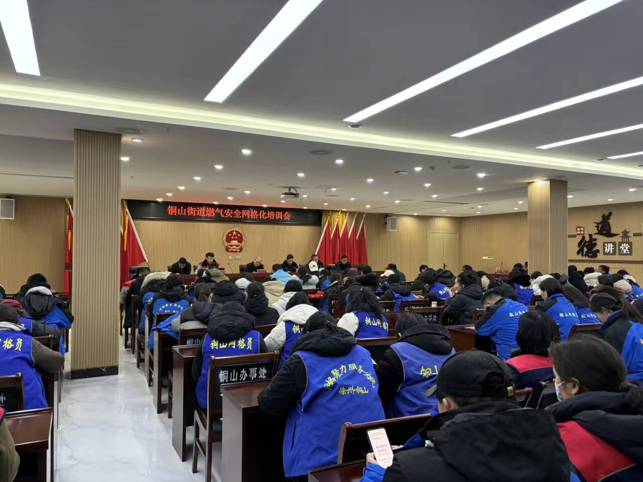 为提升餐饮企业燃气安全“网格化”管理服务水平,进一步强化燃气安全风险及事故隐患的排查治理工作,有效防范和遏制燃气安全事故的发生。1月30日,铜山街道办事处联合徐州中裕能源公司组织开展燃气安全网格化培训,区燃气热力管理处领导受邀参加培训授课,徐州中裕能源做燃气使用注意事项讲解,会议由铜山街道办事处综合行政执法局张雷主持,街道办事处领导做燃气安全工作部署,近百名社区网格员参加。