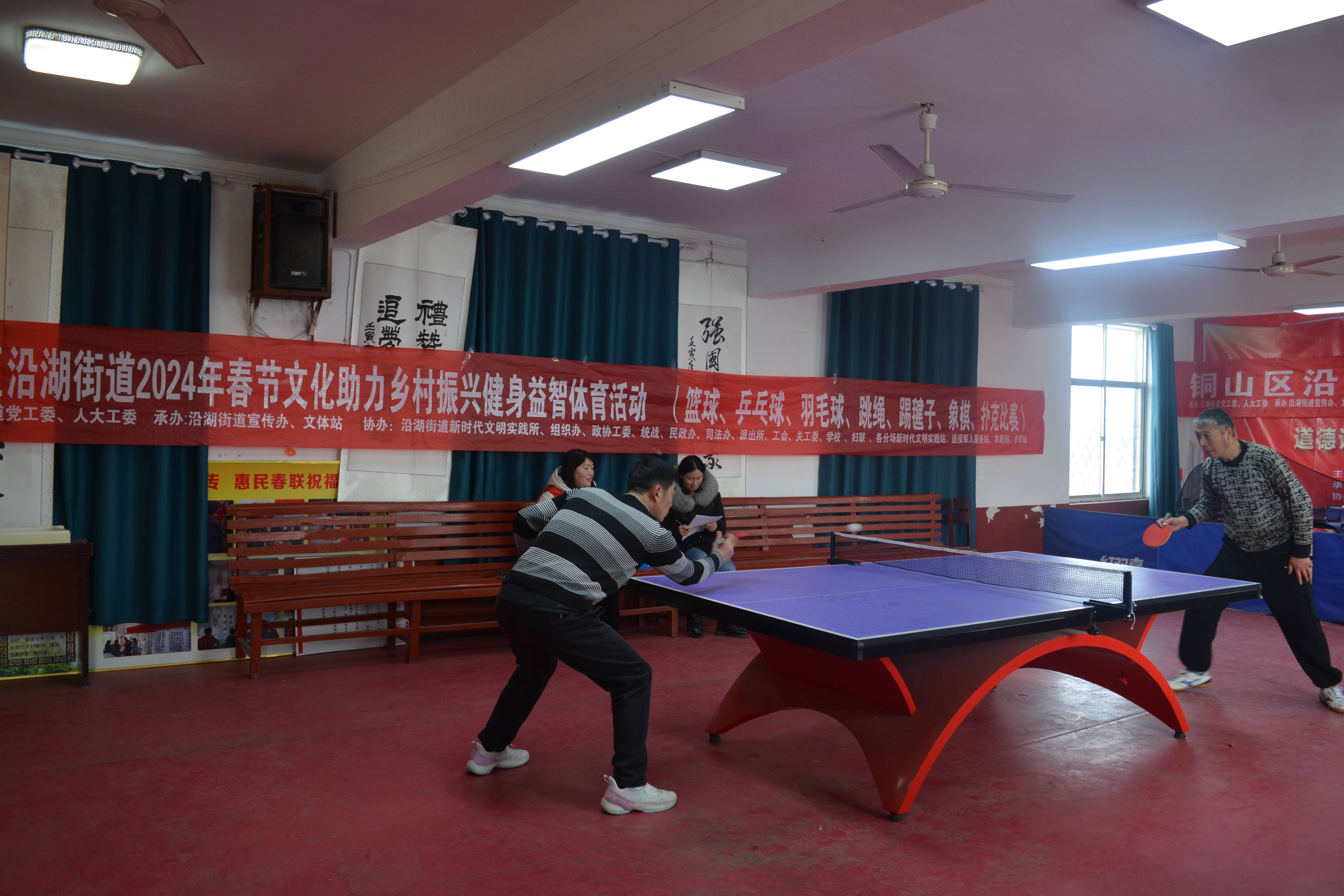 党员冬训志愿行免费手写送春联活动,将一个个象征吉祥美好的“福”字,一幅幅火红喜庆的春联,送到因公伤残、因病伤残等特困户和留守儿童家庭手中。文体活动共设扑克(掼蛋)、象棋、男女篮球 、男女乒乓球 、男女羽毛球、跳绳等项目,内容丰富多彩,现场精彩纷呈充分显示了沿湖街道群众健康乐观、昂扬向上的精神面貌,营造了喜庆祥和的春节氛围。