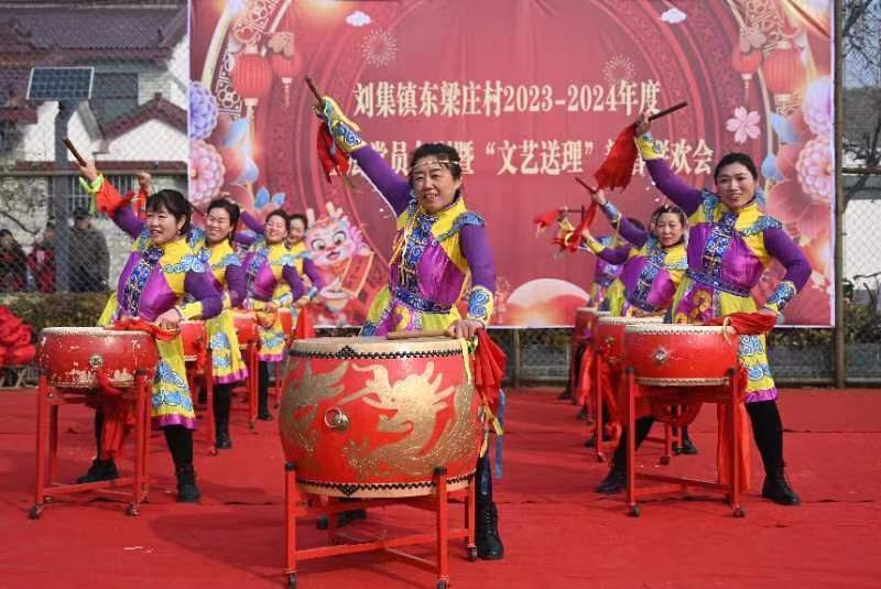 近日,由徐州市铜山区刘集镇东梁庄村举办的2023-2024年度基层党员冬训暨“文艺送理”新春联欢会在新时代文明实践站小广场举行。