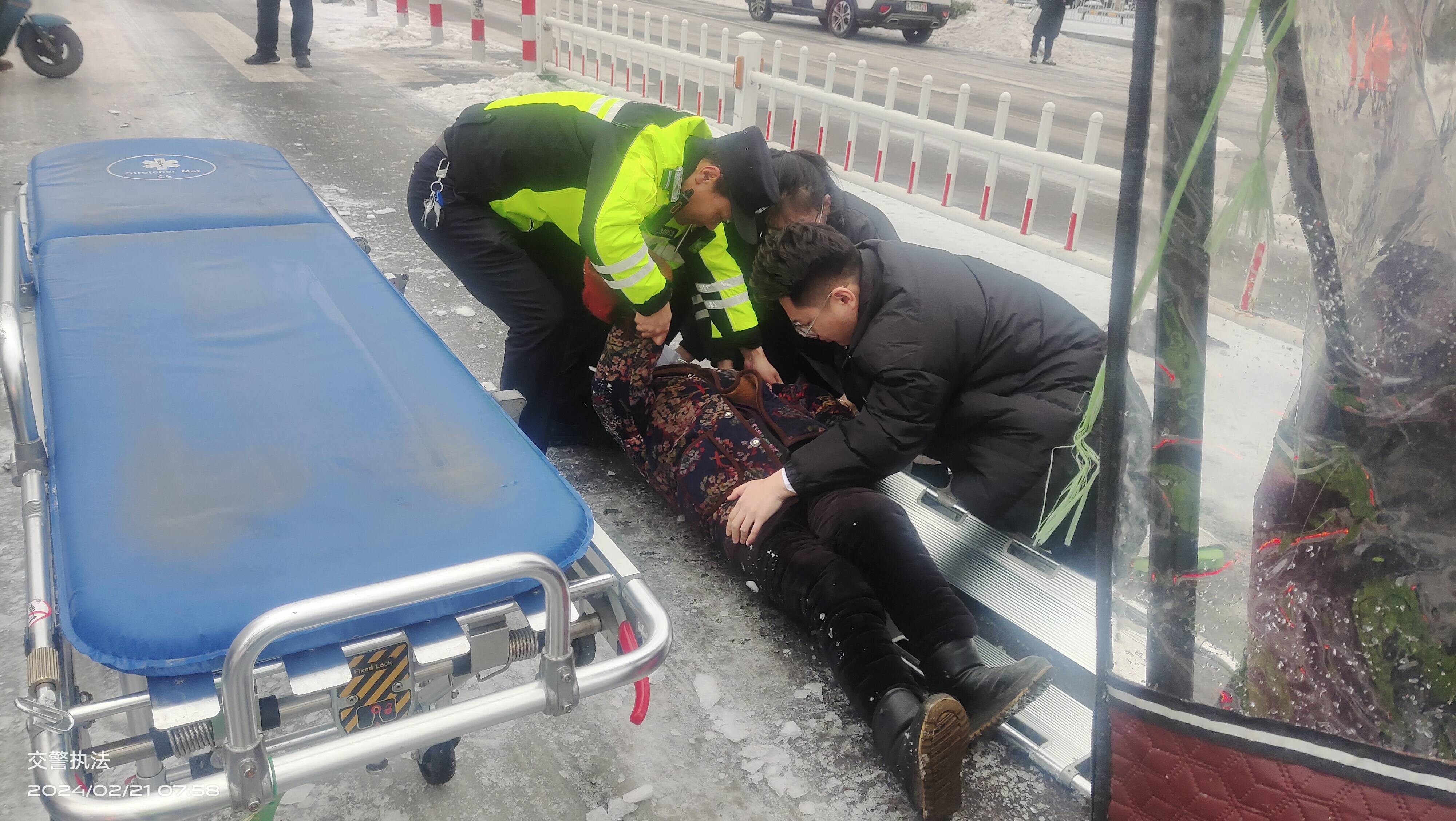 2月21日早上7时,按照恶劣天气应急预案,合理配置全部警力,在辖区主要路口路段及各处上坡、急弯路段部署专人值守,疏导交通,配合城管环卫部门开展融雪除冰工作,救助打滑摔倒群众。