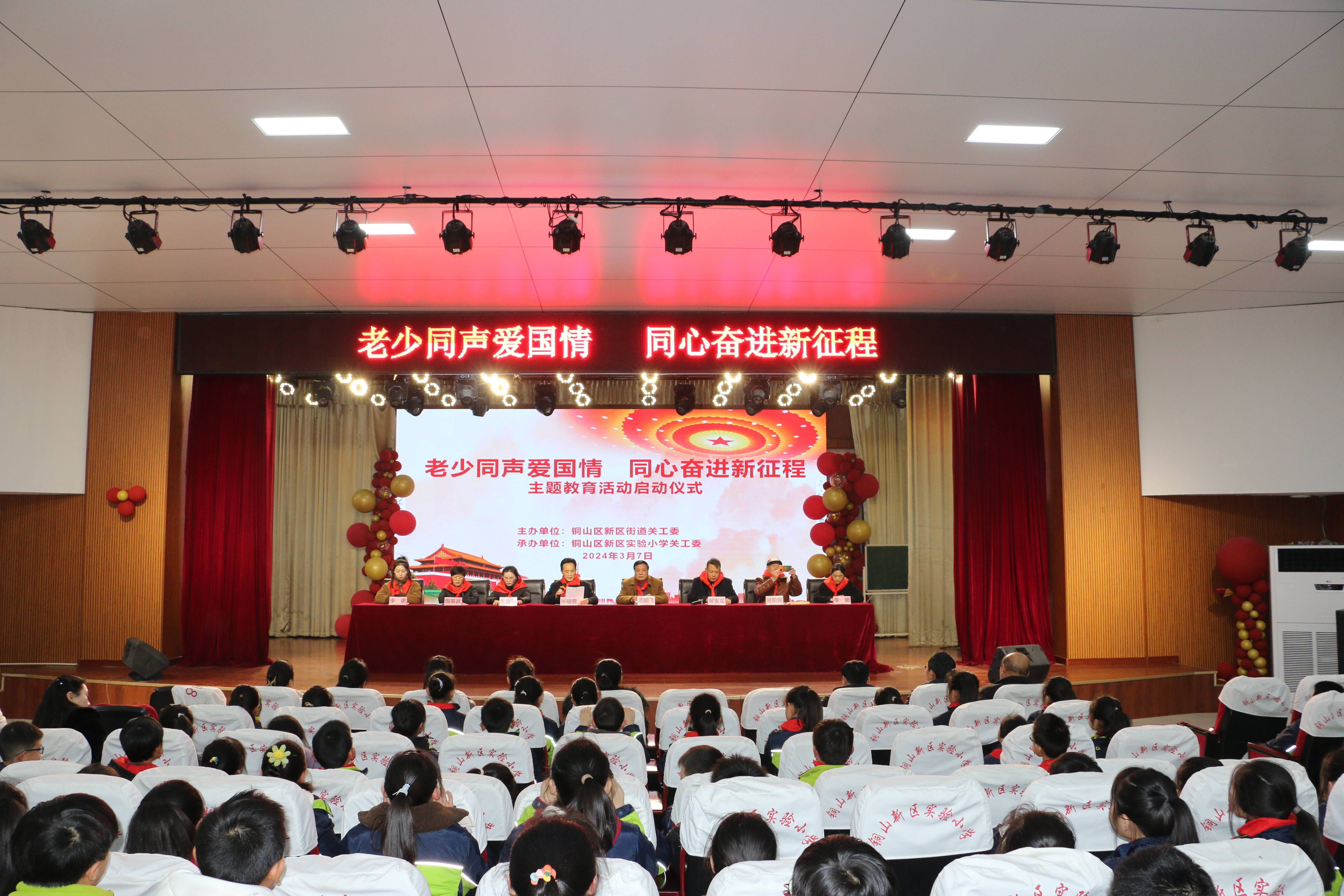 3月7日下午,新区街道关工委 “老少同声爱国情 同心奋进新征程”主题教育活动启动仪式在新区实小举行,近500名学生参加活动,启动仪式上新区街道关工委主任张明营作动员报告,新区关工委五老宣讲团团长孟昭飞作“树立远大理想、立下报国志向、争做中国式现代化建设接班人”演讲报告,少先队员代表宣读积极参加主题教育活动倡议书。