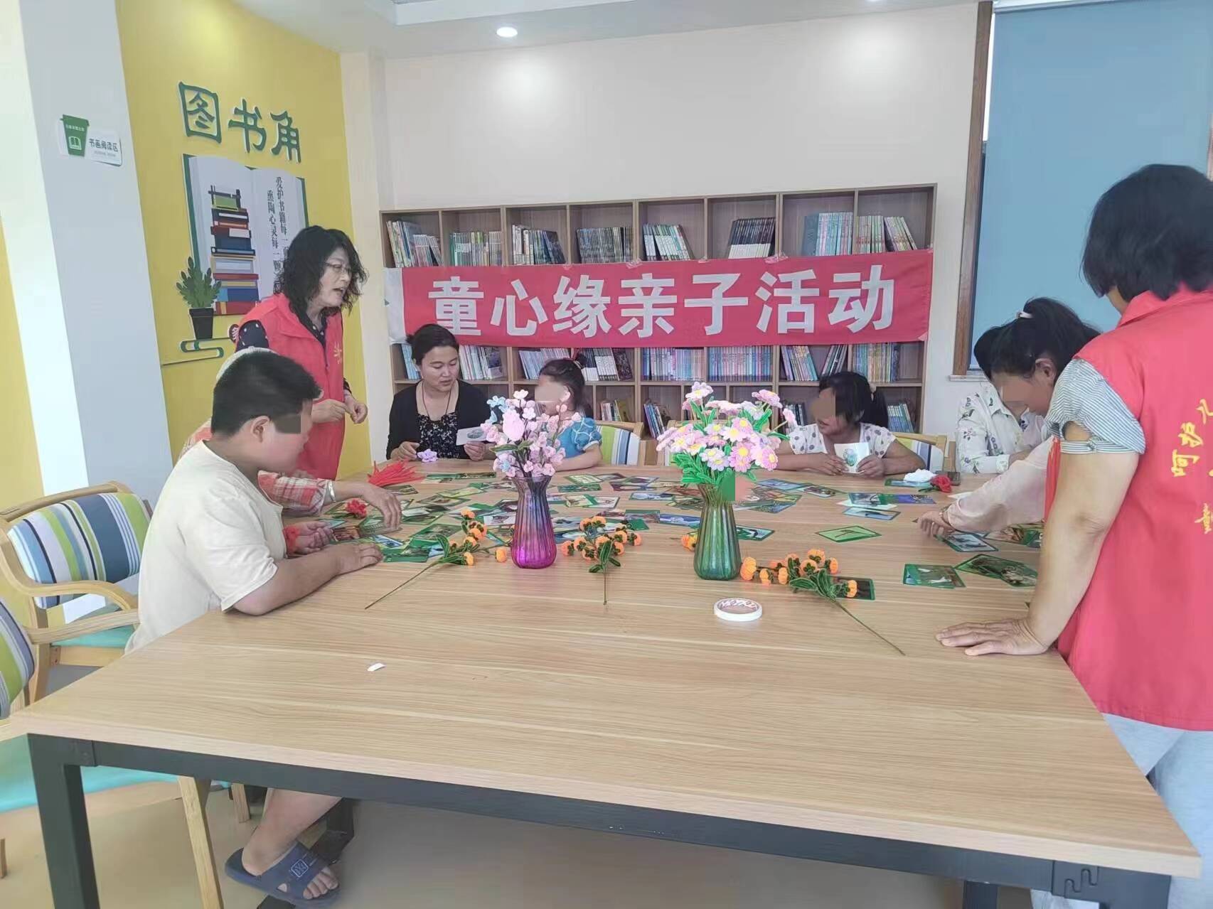 活动中,亲子互动游戏借助扭扭棒,锻炼特质孩子手眼协调能力,模仿能力和简单指令执行能力,让孩子们在活动中体验成功的喜悦,志愿者指导家长与孩子有效互动,提升了亲子沟通能力,孩子们欣赏着亲手制作的小红花,脸上洋溢起成功的喜悦。