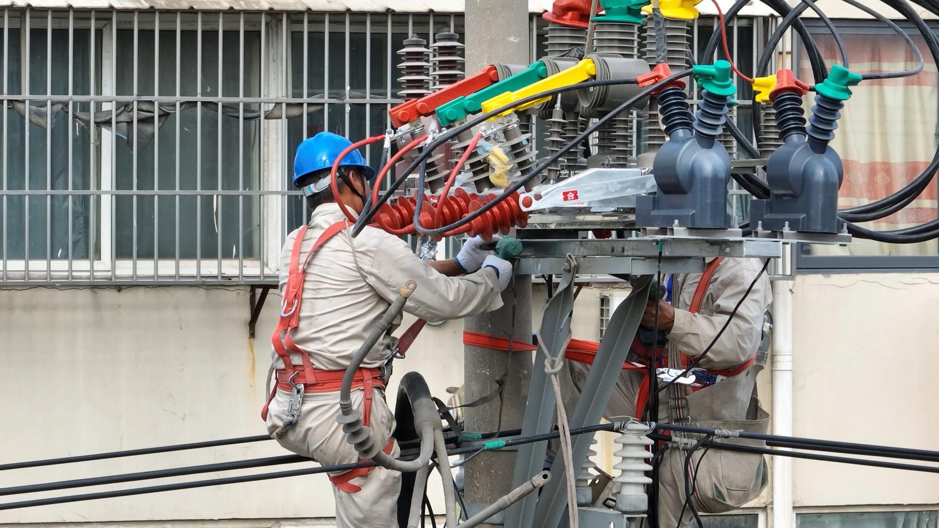 近日,铜山供电公司抢修人员对10kv焦三线进行电路保险现场更换作业,以迎接夏季用电高峰的到来。