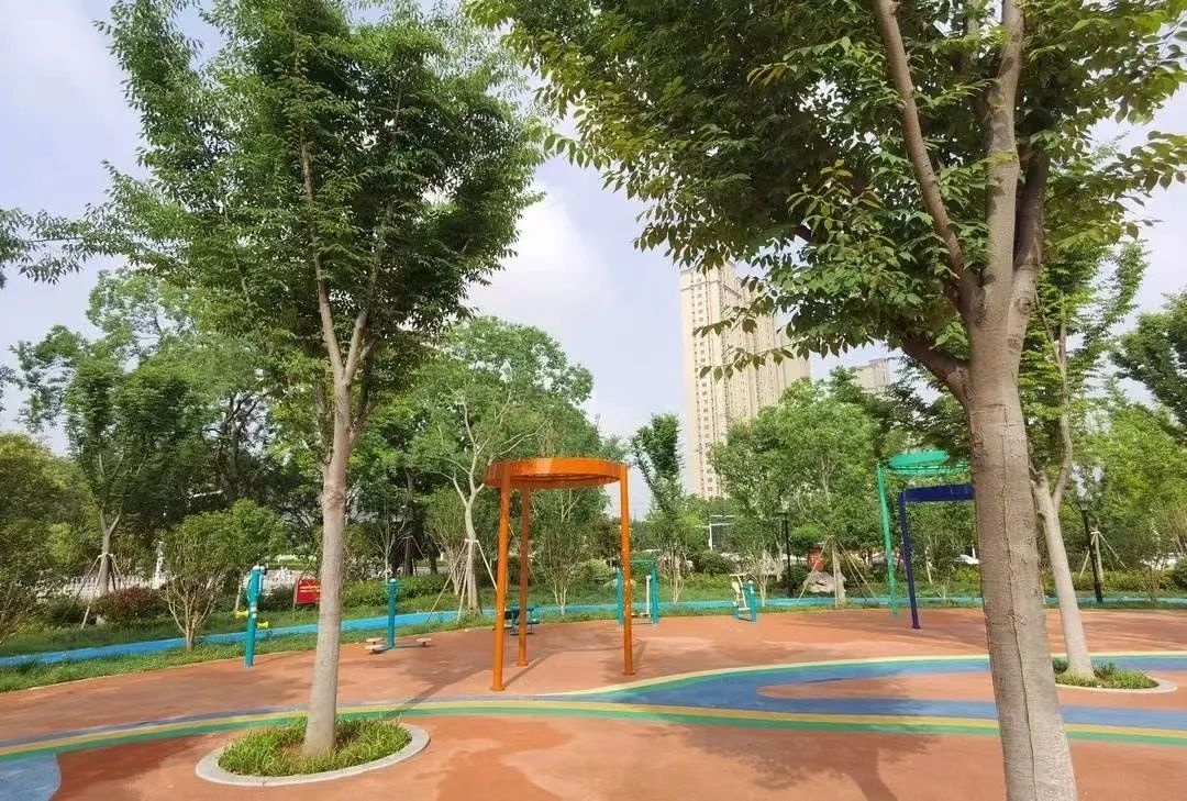 草木青葱、鲜花绽放、曲径通幽,儿童娱乐设施、健身步道、运动器材等便民设施应有尽有……在位于彭祖路与嵩山路交汇处东北角的“彩虹运动场”,一幅绿树成荫、芳草茵茵的美景映入眼帘。
