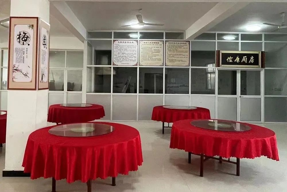 陈善怀口中的俭康厨房占地面积400多平方米,分为宴会大厅和封闭式后厨。大厅窗明几净,空调、音响齐全;后厨干净整洁、功能区划分明确。