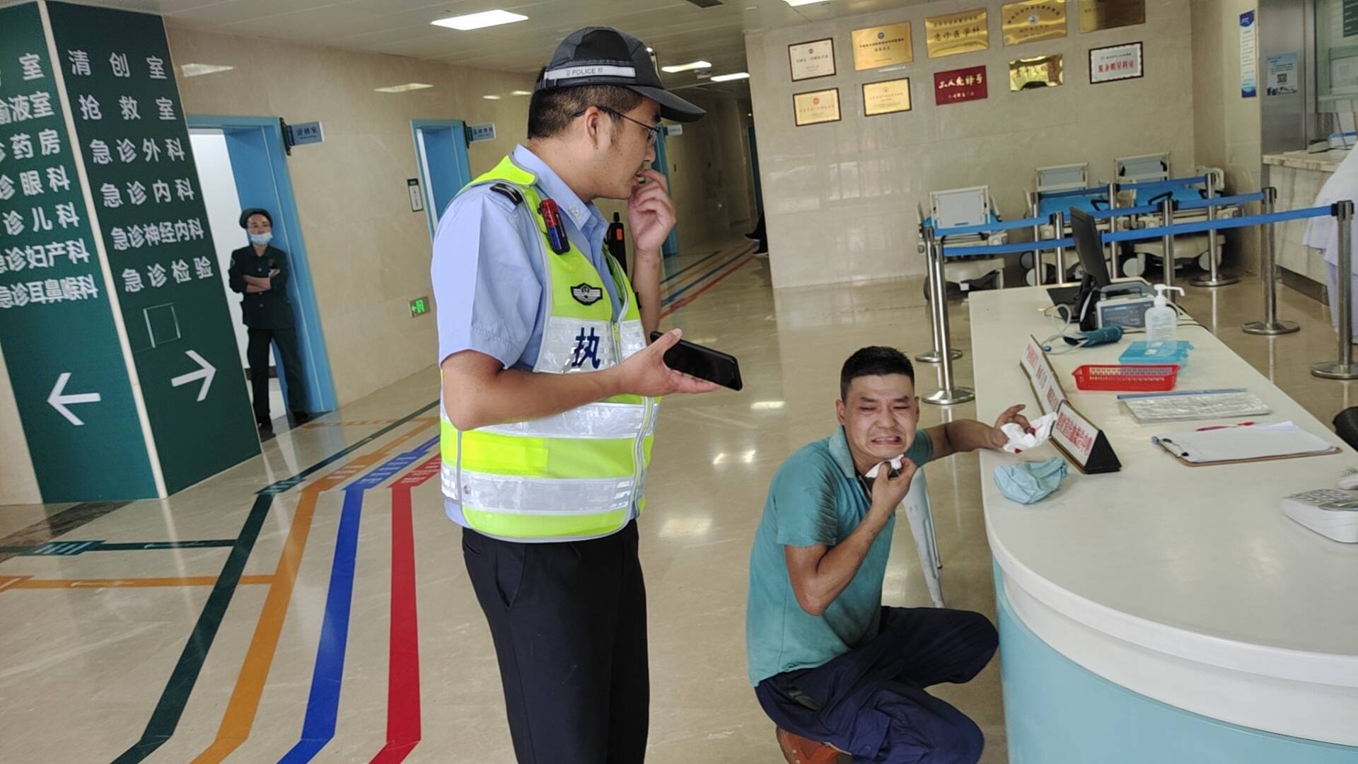 7月22日下午3时许赤日炎炎,铜山交警大队城区中队辅警杜明星与陈贺冒着烈日酷暑排查辖区各路口信号灯是否正常,在北京路五环路交叉口,一辆黑色越野车在交警面前停下来,驾驶人火急火燎地告诉辅警,工友手指被机器砸伤,要求警车护送到徐州市第一人民医院救治。