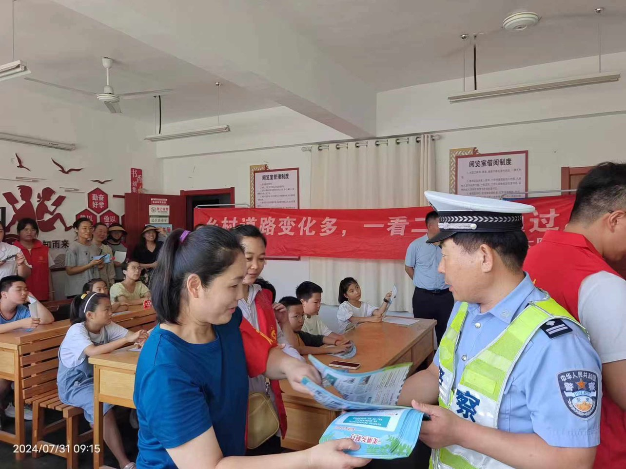 7月的最后一天,铜山交警刘集中队中队长董云峰来到刘集镇青少年活动中心对家长及学生开展暑期交通安全宣传。