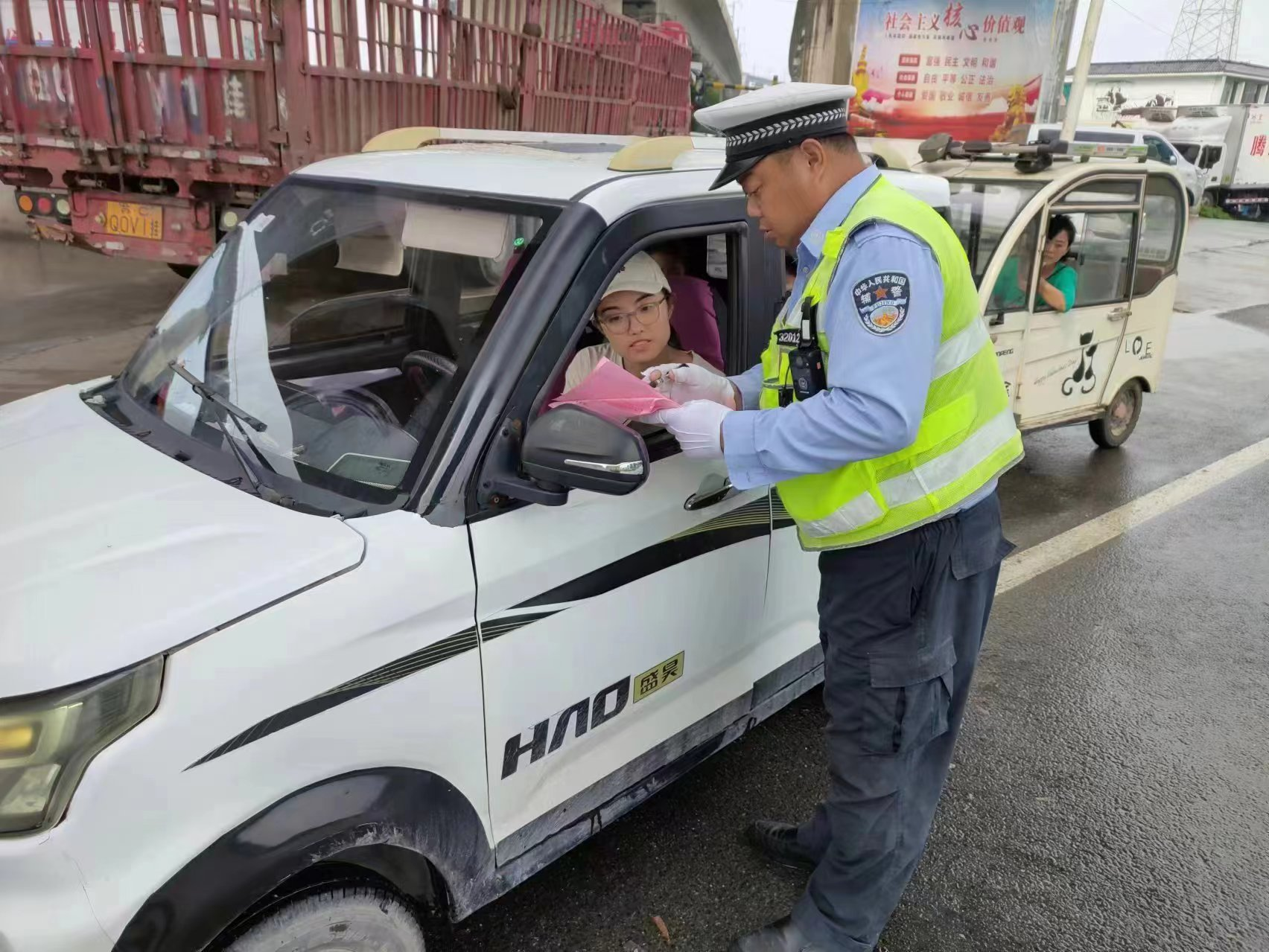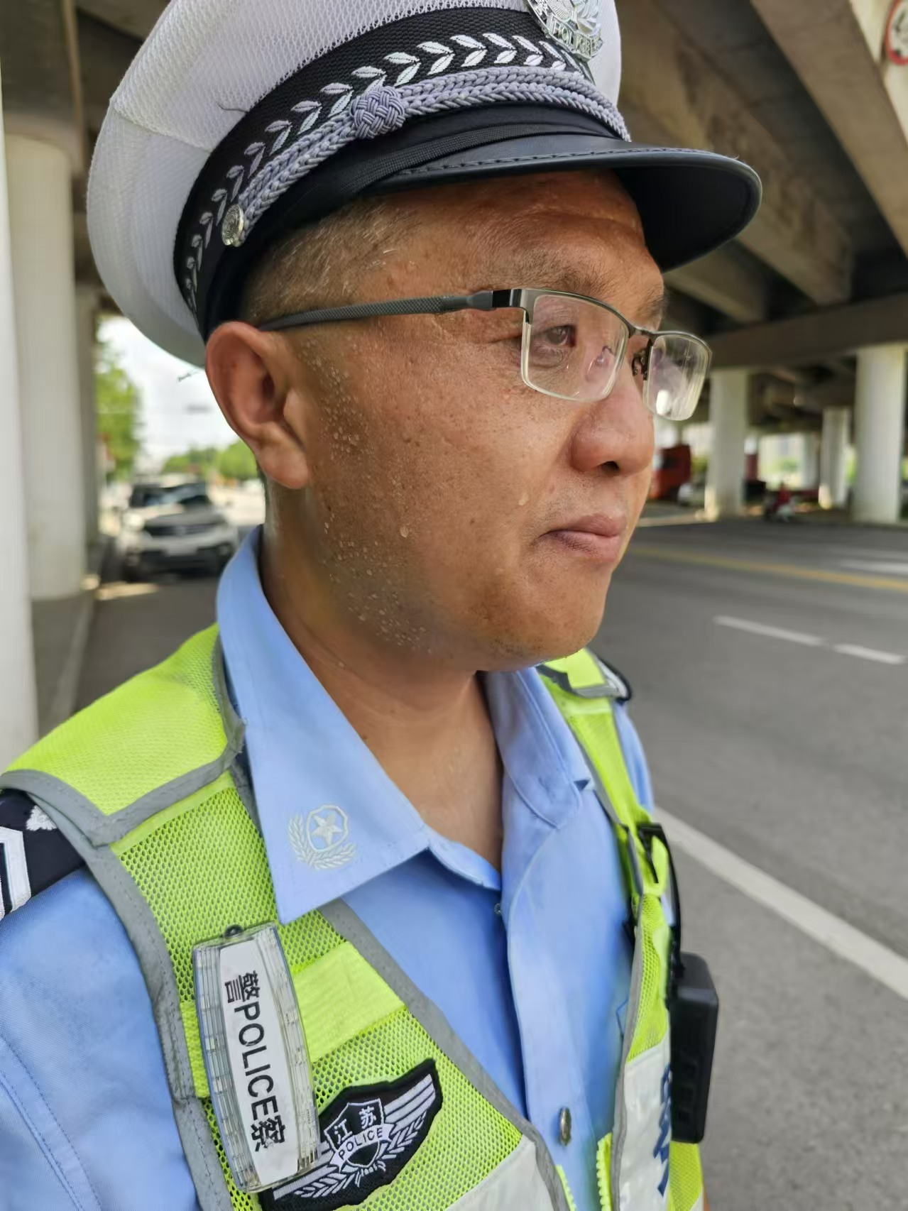 夏日炎炎,辅警张建在对驾驶员进行交通宣传
