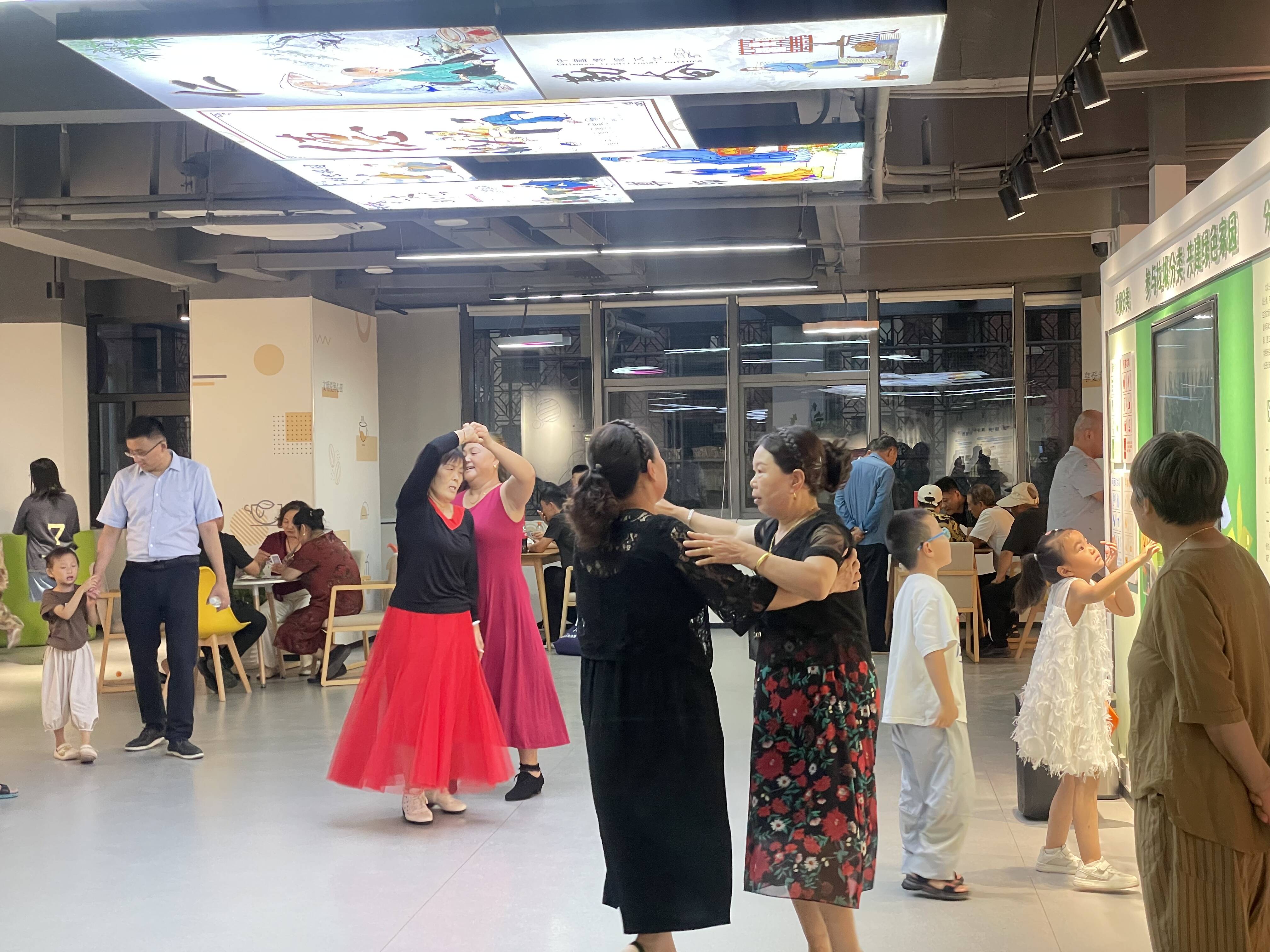 交谊舞跳得正嗨,棋牌大赛对战正酣,乒乓球案上你来我往,而阅览室里,“读名家·悟人生”阅读分享会正在进行……居民们走出“小家”融入“大家”,在这里感受“夜生活”的放松。
