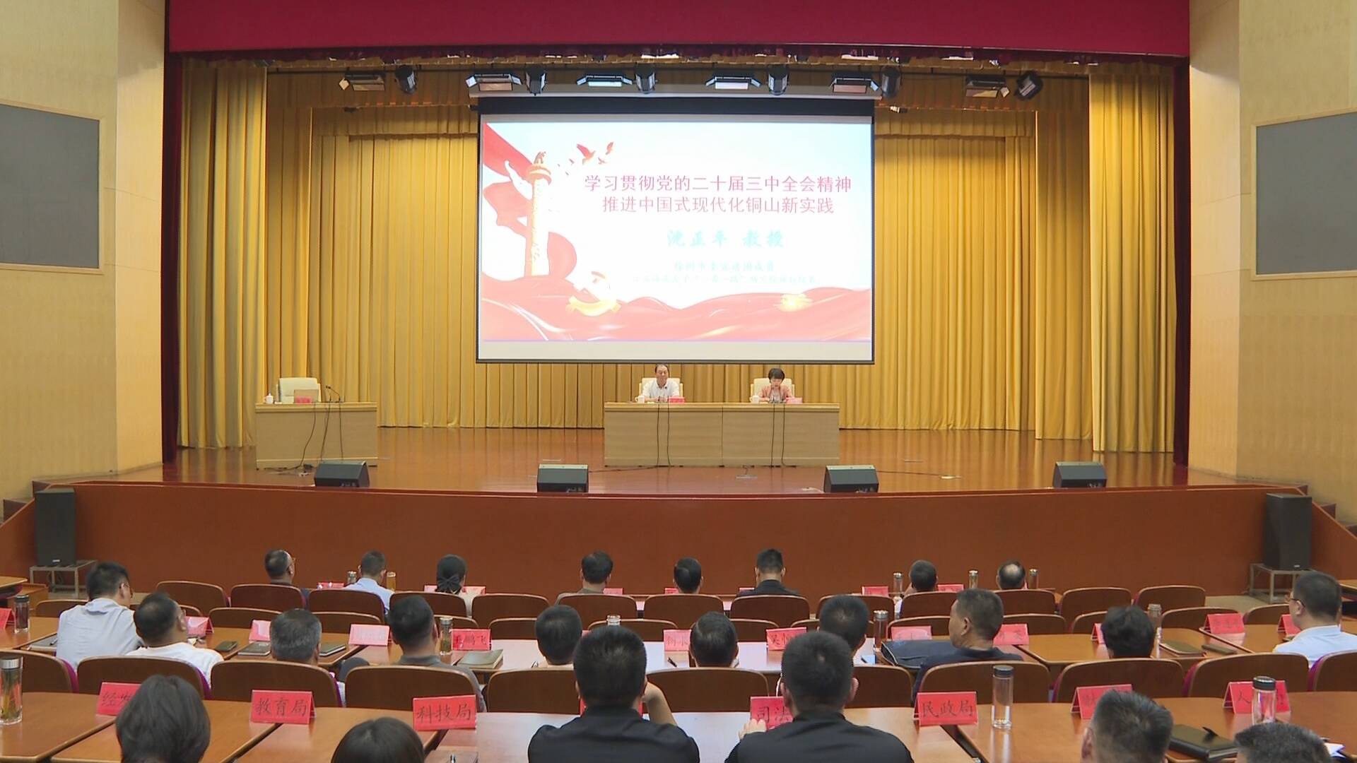 8月30日,学习贯彻党的二十届三中全会精神市委宣讲团报告会在铜山区举行。市委宣讲团成员、淮海发展研究院院长、江苏师范大学教授沈正平作宣讲报告。
