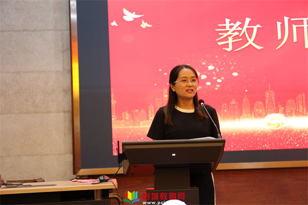 选择了教师职业就意味着选择了一份沉甸甸的责任,意味着选择了一场终身的使命。三尺讲台论古今,一方黑板写春秋,衣带渐宽终不悔,自有乐趣心中留。戚晓玮老师作为教师代表发言,她以自身的成长引领教师向上生长。