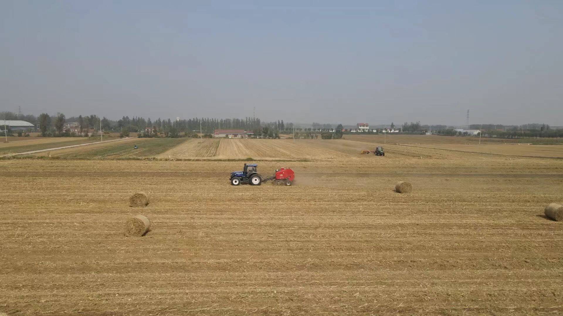 眼下,正值玉米收割繁忙期,在利国镇郝家村刚刚收割后的玉米地里,搂草机和打捆机正在田里来回穿梭,忙个不停,秸秆被吸进机器后头,经过压缩和捆绑,变成了一卷卷结实的草垛,整齐地排列在田间等待装运,送到养殖场。