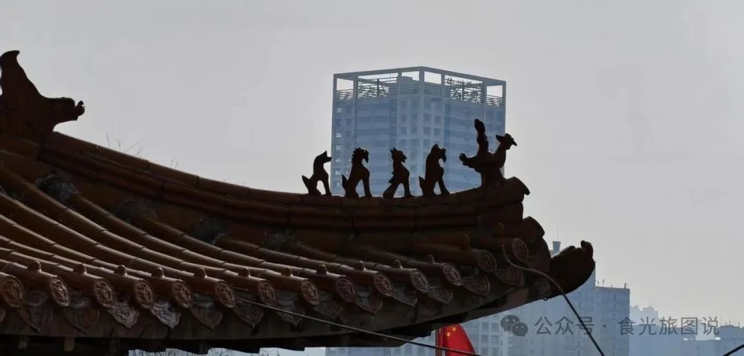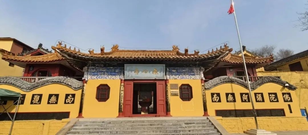 登临绝顶,犹见历史层叠,东山寺的暮鼓正撞破云层。1997年春风渡彭城,普度庵迁址,东山寺琉璃瓦上忽落满星子。大雄宝殿飞檐揽月,三世佛垂目轻笑,尼僧袈裟染着杏花粉蕊,道光年定鉴法师结庐的竹影,皆在窗棂上写满轮回。大雄宝殿肃穆威严,檐角蹲兽却衔着前朝月色。尼僧的袈裟与梅色交织,流逝的光阴在阳光下俨然重生。