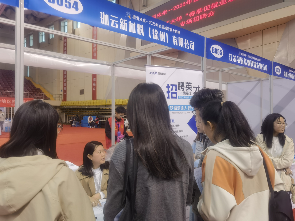 在中北大学专场招聘会上,徐州万达回转支承有限公司、徐州中煤百甲重钢科技有限公司等企业纷纷出击“揽才”,提供技术研发、生产操作、市场营销、企业管理等优质岗位,吸引众多学子前来应聘。