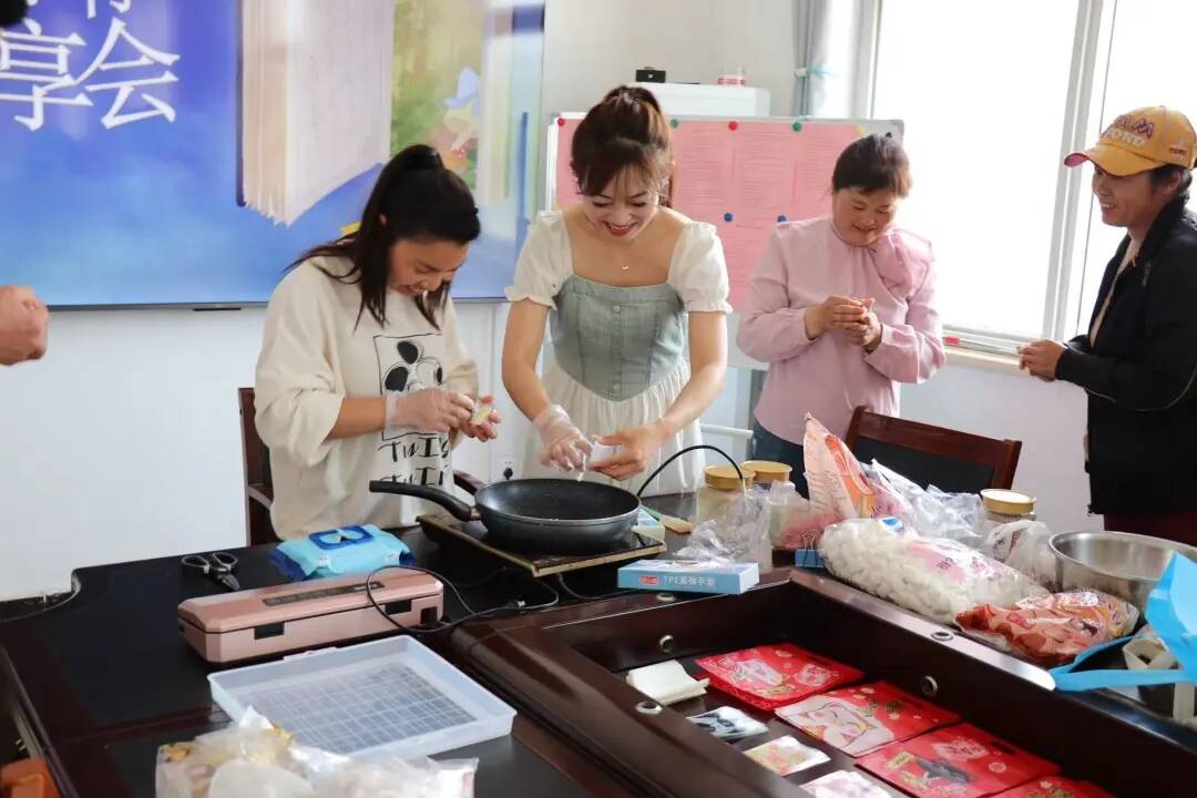 志愿者、居民纷纷围绕“美好生活”阅读主题分享、交流近期读书心得。为增加阅读的趣味性,活动还设置了手工制作雪花酥。志愿者向居民们详细讲解、演示了制作雪花酥的流程。活动现场,大家积极动手参与制作,现场热闹且“甜蜜”。