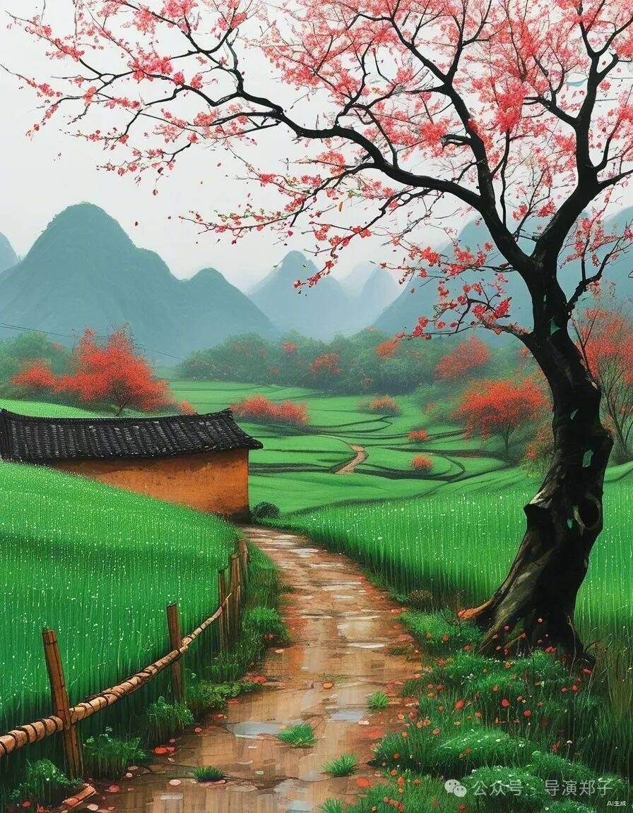 听谷雨,观花季,望俏羽。清明翠茶,新烹烟浴。村落有习俗,晚春慕生机。船游洗尘纤纤,云脚尚寒苦旅。古时行走是朝气,如水空垂遥月寄。