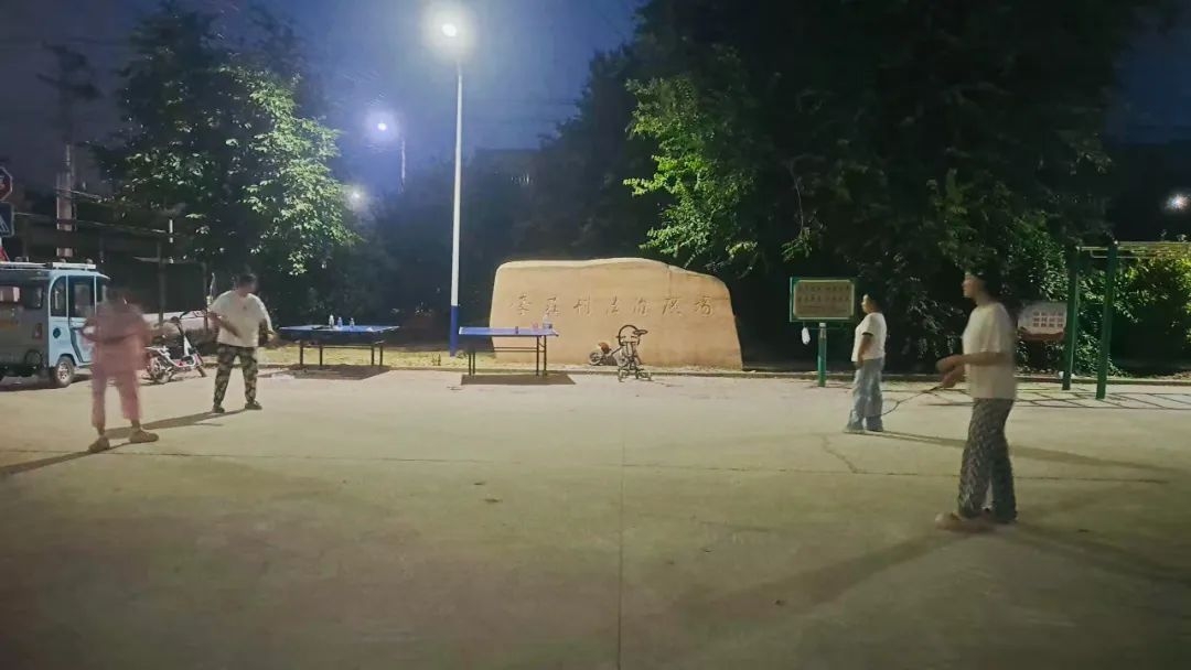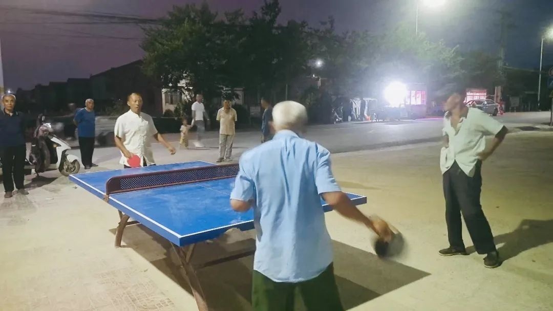 在科普讲解之后,村民自由选择自己喜欢的项目。广场西侧乒乓球乒乒乓乓奏响,六七十岁的老年人也身姿矫健,在球台旁尽情挥洒汗水。广场东侧年轻人正在打羽毛球,步伐灵洋溢着青春的活力。广场中间爱好广场舞的村民在志愿者的带领下跳起健身操,成为夜晚最美的风景。孩子们在欢乐中释放天性,老人们在运动中重焕青春。大家一起挥洒汗水,共享健康与快乐。