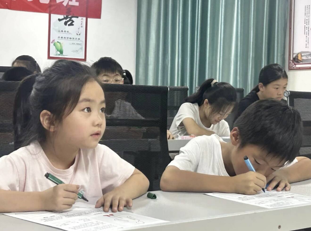马坡镇大新庄村暑托班开设了作业辅导、书法写作、田间课堂等多元化课程,特别设置了国学特色课程,系统教授《三字经》《千字文》等国学经典篇目,并免费为学生提供教材、笔墨纸砚等学习用品,让优秀传统文化在潜移默化中浸润童心,让孩子们实现“学习有收获、成长有陪伴”。