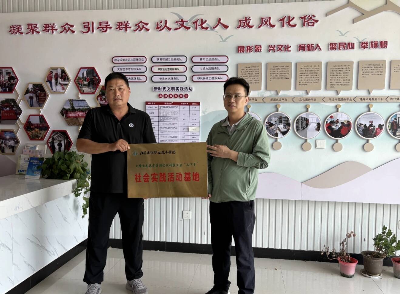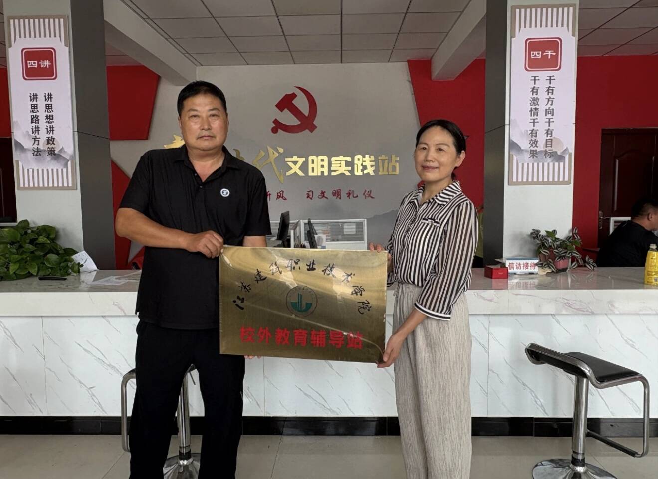 随后,一行人来到后谷堆村,举行“校外辅导工作站”和“社会实践活动基地”挂牌仪式。工作站和基地的成立,将为暑托班带来更专业的师资支持和丰富的课程资源,助力孩子们在快乐中学习、在陪伴中成长,也为学院学生提供了实践育人的新阵地。
