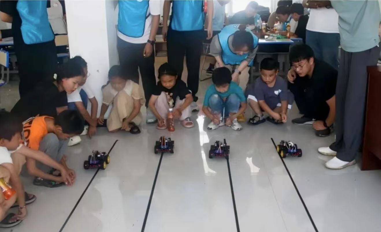 挂牌仪式后,实践团队通过视频和互动讲解,帮助孩子们了解人工智能和智能制造知识,并带领20名孩子动手制作电动玩具车。