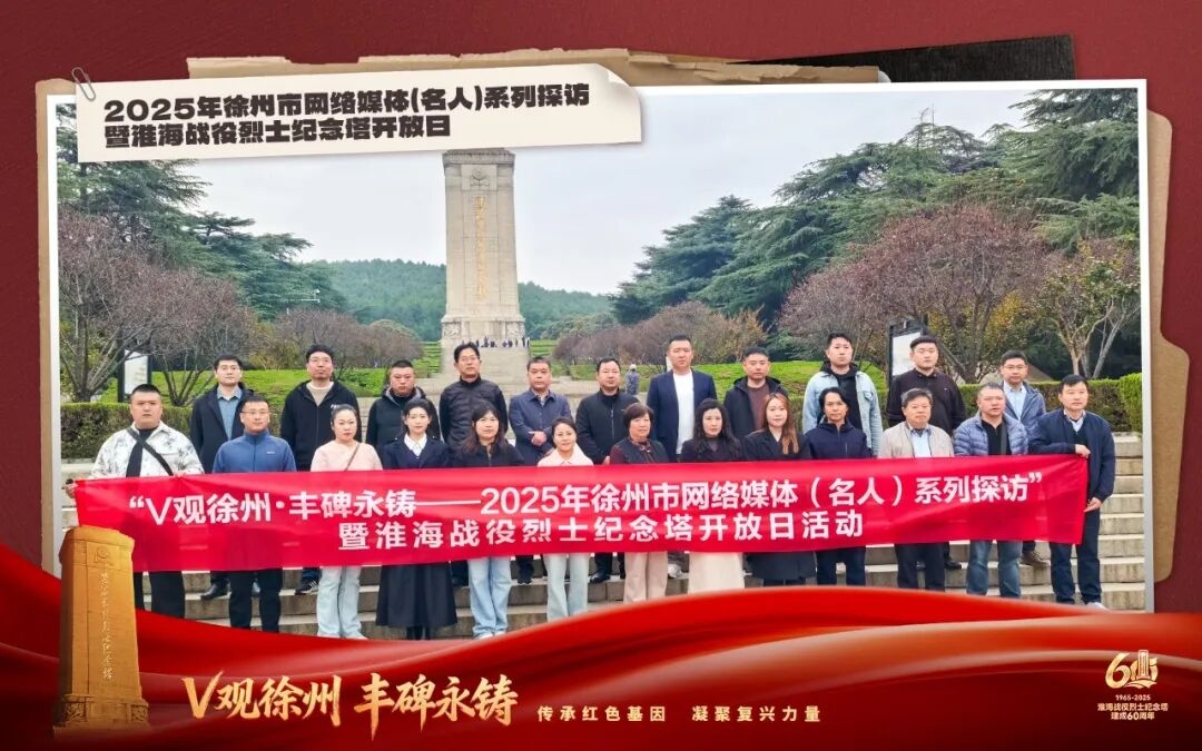 为深入贯彻落实习近平总书记关于传承红色基因、赓续红色血脉的重要指示精神,充分发挥网络传播优势,讲好徐州红色故事,10月30日,由市委网信办、淮海战役烈士纪念塔管理中心共同主办的“V观徐州·丰碑永铸——2025年徐州市网络媒体(名人)系列探访”暨淮海战役烈士纪念塔开放日活动成功举办,来自徐州及安徽宿州两地的30余位网络媒体记者和网络名人代表共同参与。