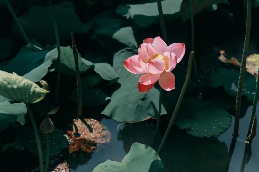 荷花的花瓣柔软如丝,粉色的色彩如同少女的脸颊,娇嫩而动人。每一朵荷花都是独一无二的艺术品,它们在池塘中静静地绽放,宛如一群舞者在水面上翩翩起舞。