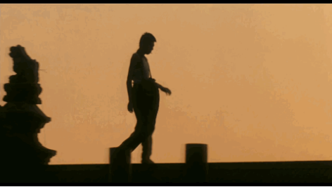 比如说,影片有一段非常经典的镜头与原作有一定出入,但在感觉上却相当还原。夏雨饰演的马小军光着上身,在楼顶上徘徊,嘴里叼着烟。这个夕阳下的剪影曾被制作成海报和DVD封面。