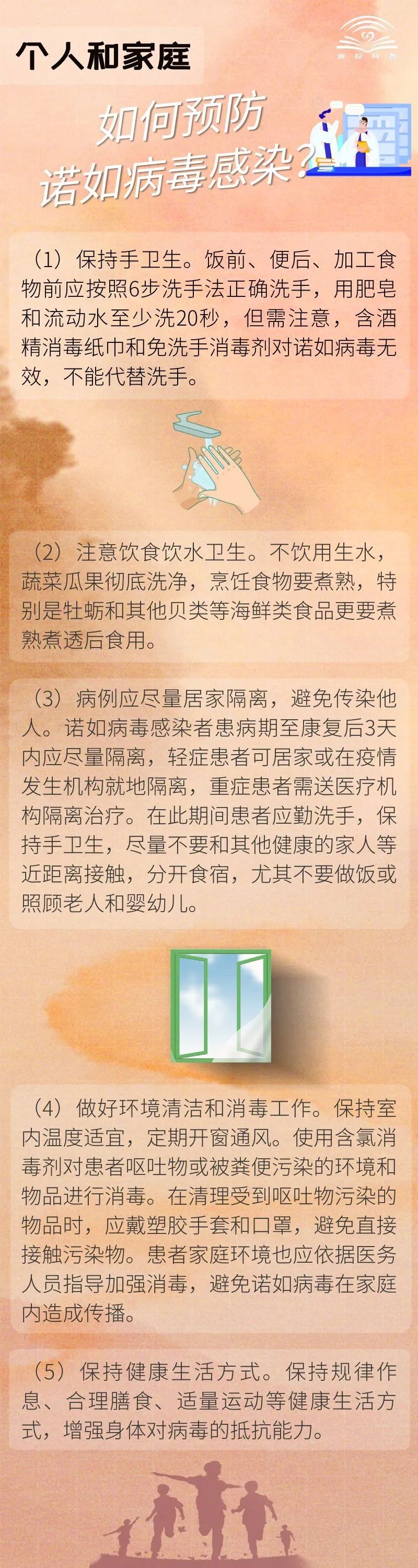 每年10月到次年3月是诺如病毒感染高发期,学校和托幼机构等人群聚集场所是诺如病毒感染高发场所。个人和家庭如何做好防护工作?一起来看——