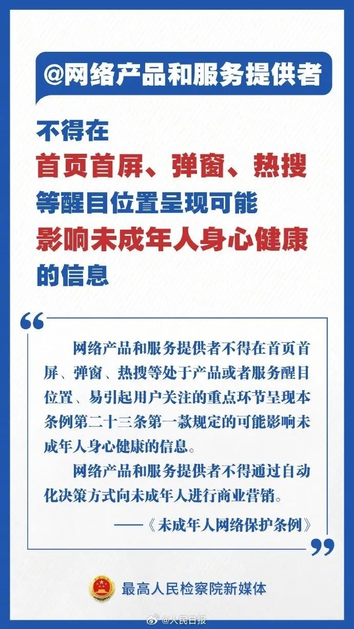 ▪明确网络产品和服务提供者发现危害或者可能影响未成年人身心健康信息的处置措施和报告义务。