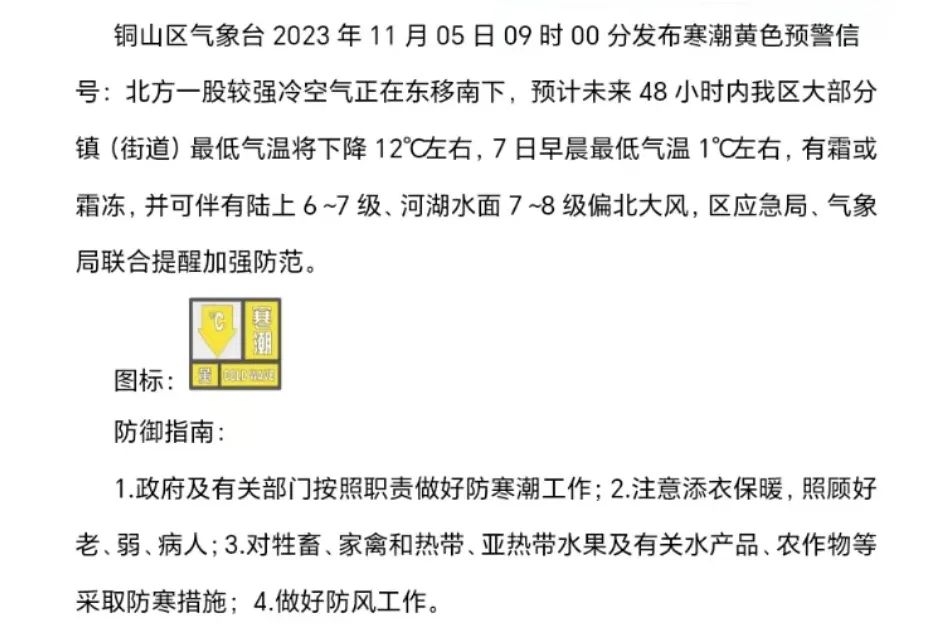 寒潮黄色预警