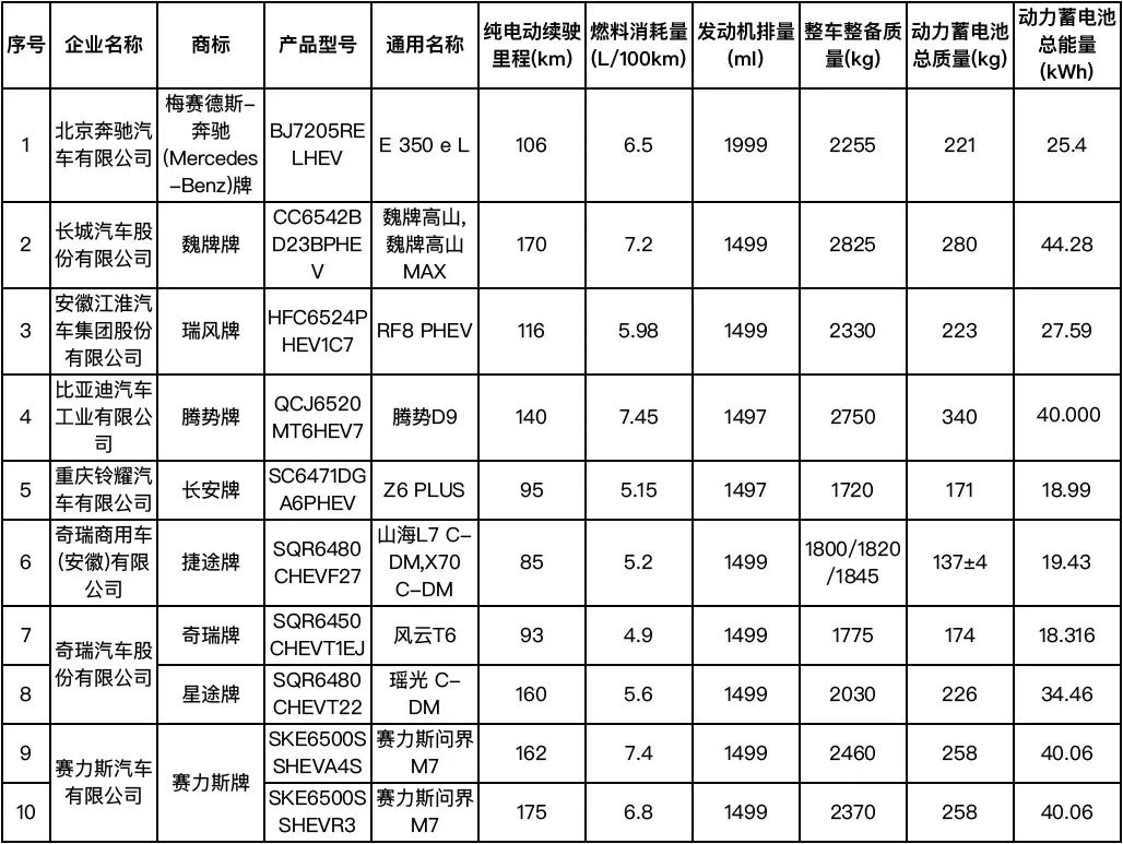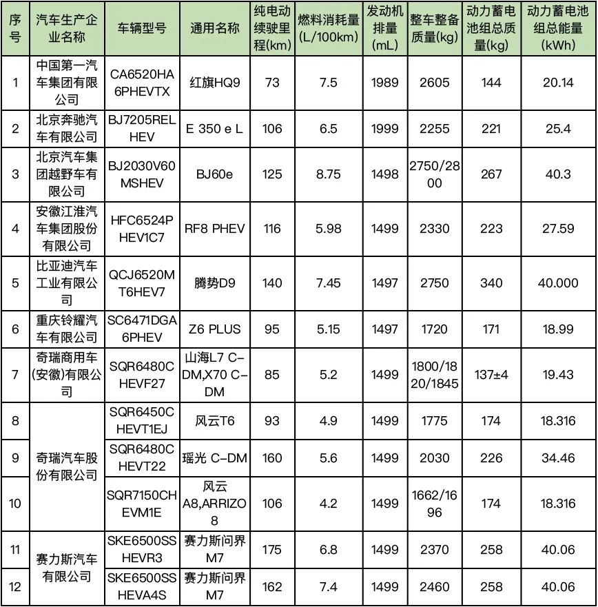 注:插电式混合动力汽车燃料消耗量仅包括传统燃料/不含电能折算。