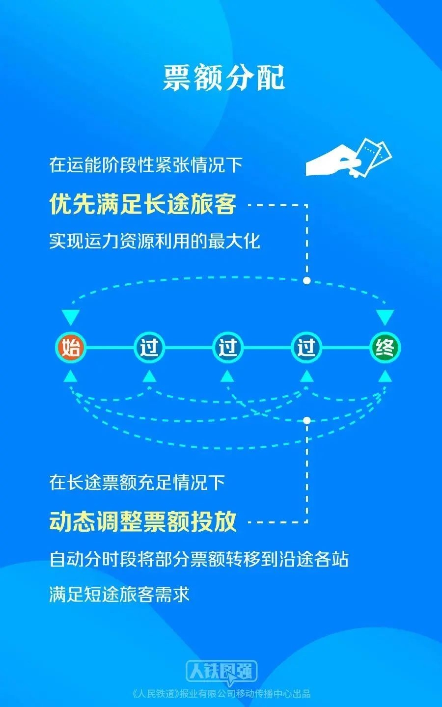 当然,铁路部门也会兼顾短途旅客需求,在长途票额充足时,根据需求变化动态调整票额投放,自动分时段将部分票额转移到沿途各站,满足短途旅客购票出行需求。