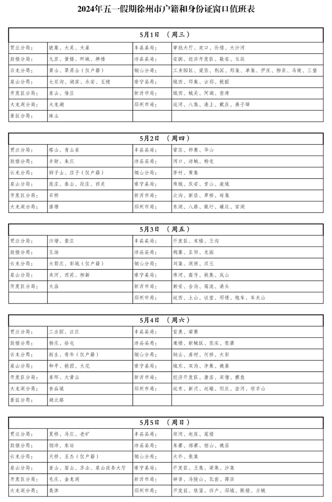 为方便群众五一假日期间办理各项户籍身份证业务,节假日期间5月1日至5月5日全市所有户政窗口和身份证受理点错时办理户籍、居民身份证等户政业务。进驻政府服务中心的户籍、身份证窗口,按照政府服务中心的工作时间执行。请广大市民相互转告,合理安排时间。
