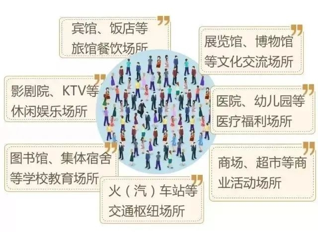 人员密集场所包括宾馆饭店、公共娱乐场所、大型商业综合体、医院、寄宿制中小学、养老院、儿童福利院、旅游场所等。