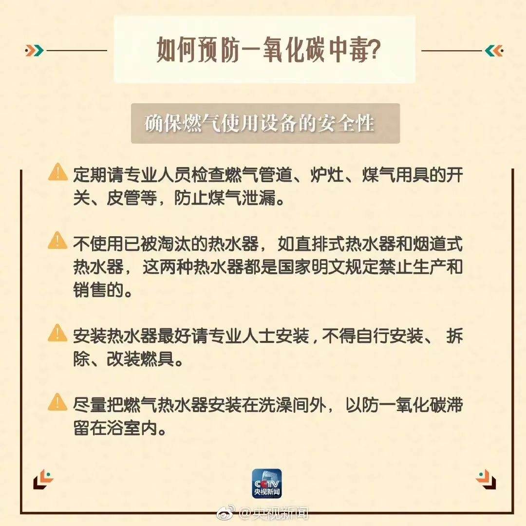 使用燃气煮饭烧菜时,要有人照看,避免汤水沸溢造成火灭漏气;务必开窗通风,保持室内空气流通,以防燃气泄漏积聚发生爆燃或因燃烧不完全而发生一氧化碳中毒等不安全事件;千万不要在开空调的密闭空间内吃炭火锅、点炭火盆。