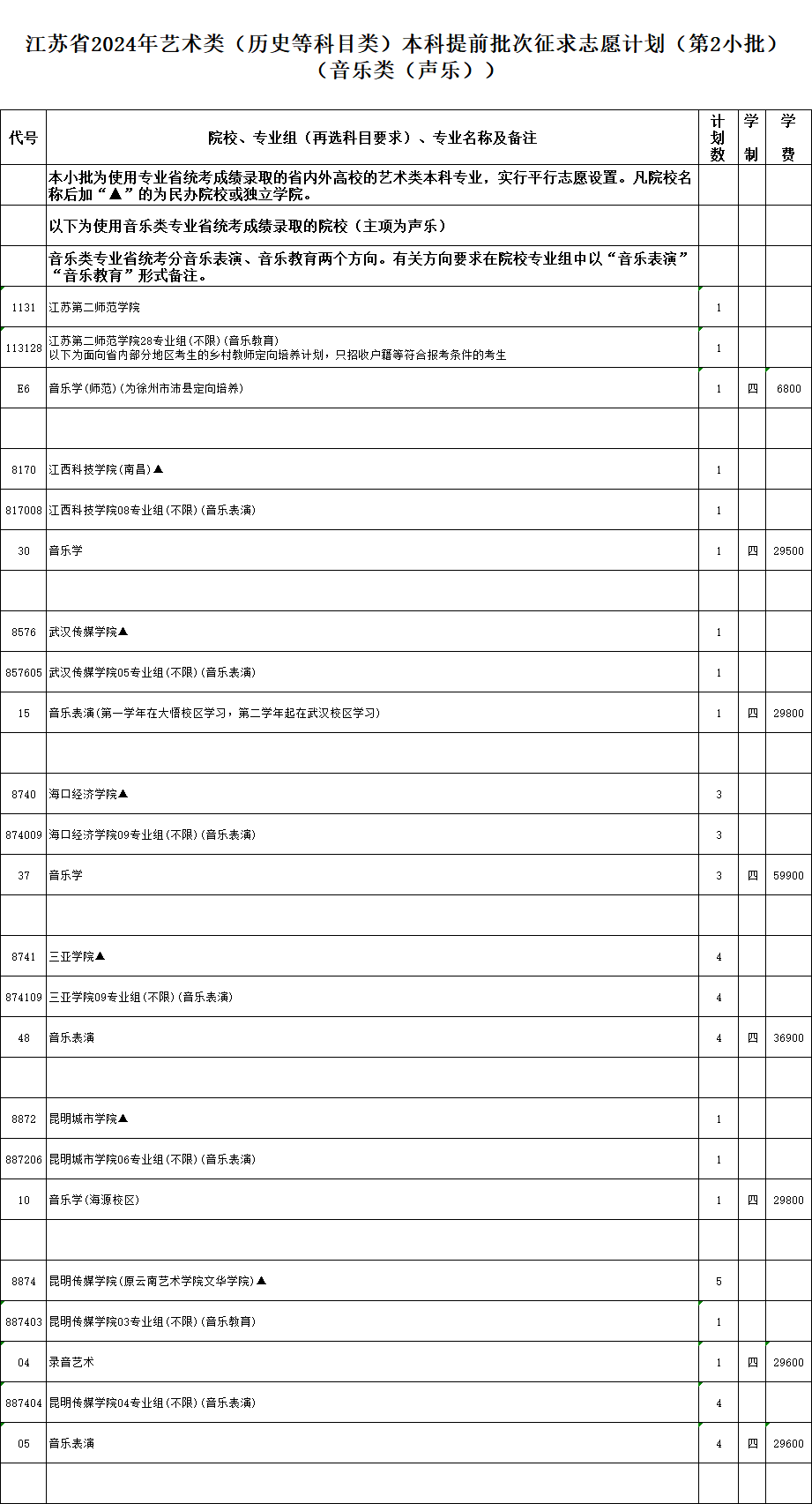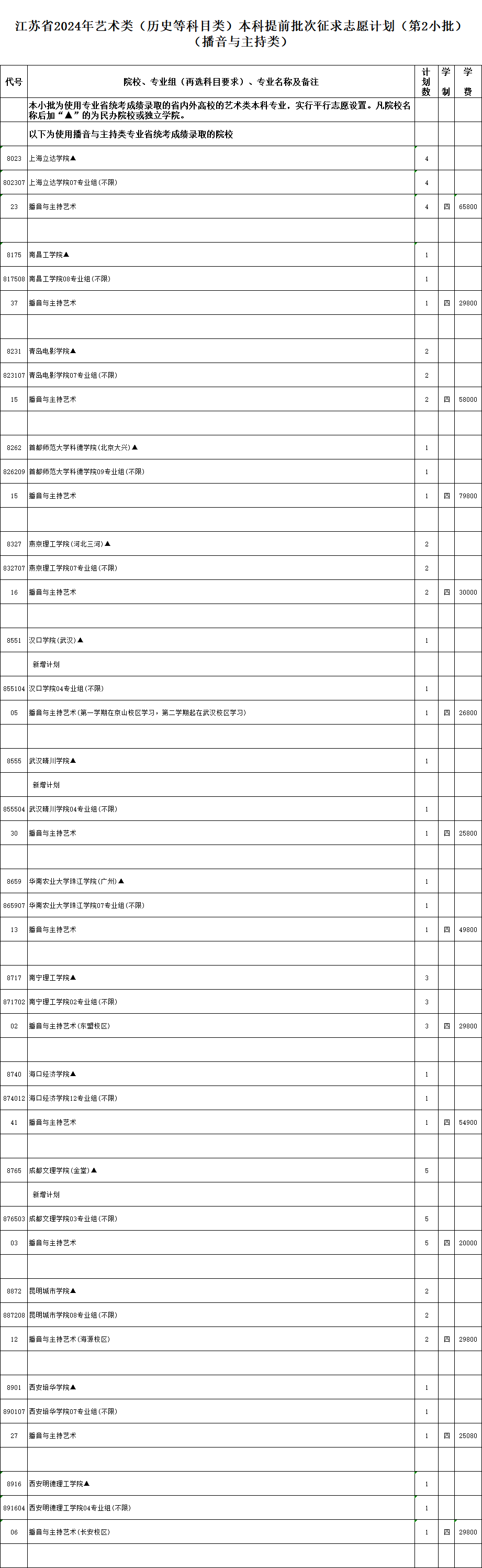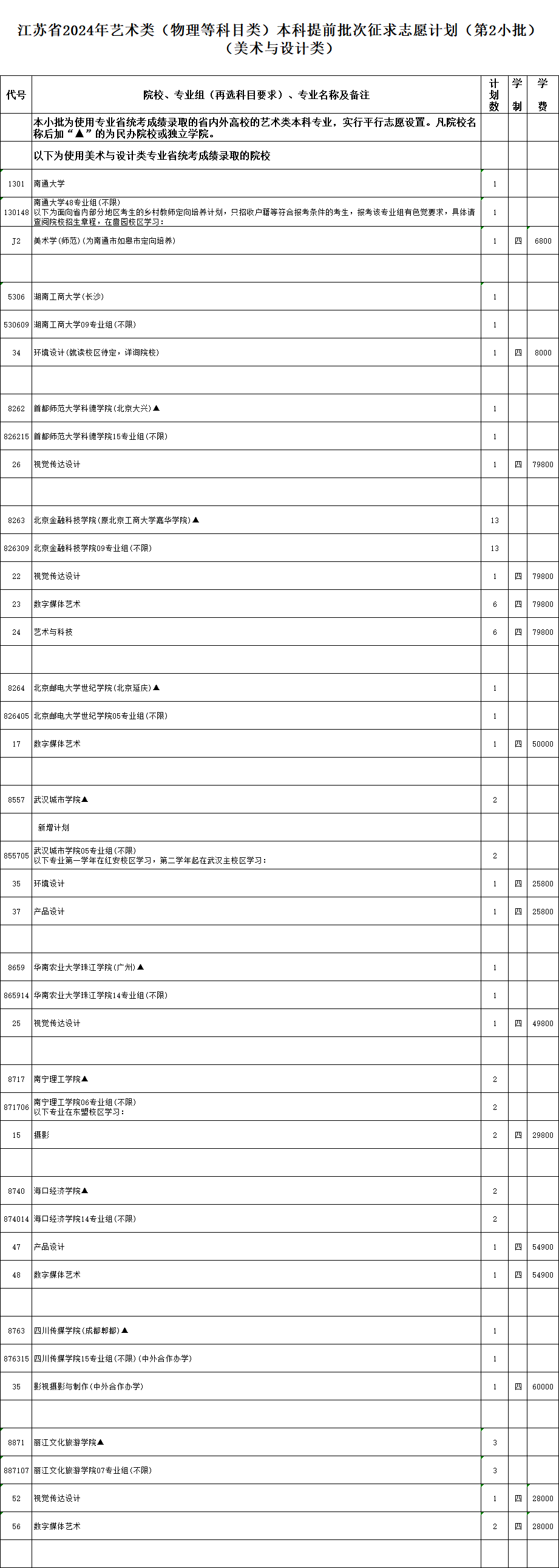 本次征求志愿的具体计划详见《江苏省2024年普通高校招生体育类本科提前批次征求志愿计划》《江苏省2024年普通高校招生艺术类本科提前批次征求志愿计划》(考生可登录江苏省教育考试院门户网站www.jseea.cn查询)。