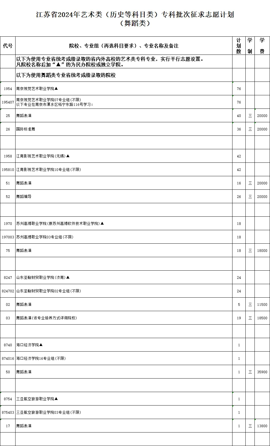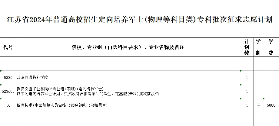 本次征求志愿的具体计划详见《江苏省2024年普通高校招生体育类专科批次征求志愿计划》 《江苏省2024年普通高校招生艺术类专科批次征求志愿计划》《江苏省2024年普通高校招生定向培养军士专科批次征求志愿计划》(考生可登录江苏省教育考试院门户网站www.jseea.cn查询)。