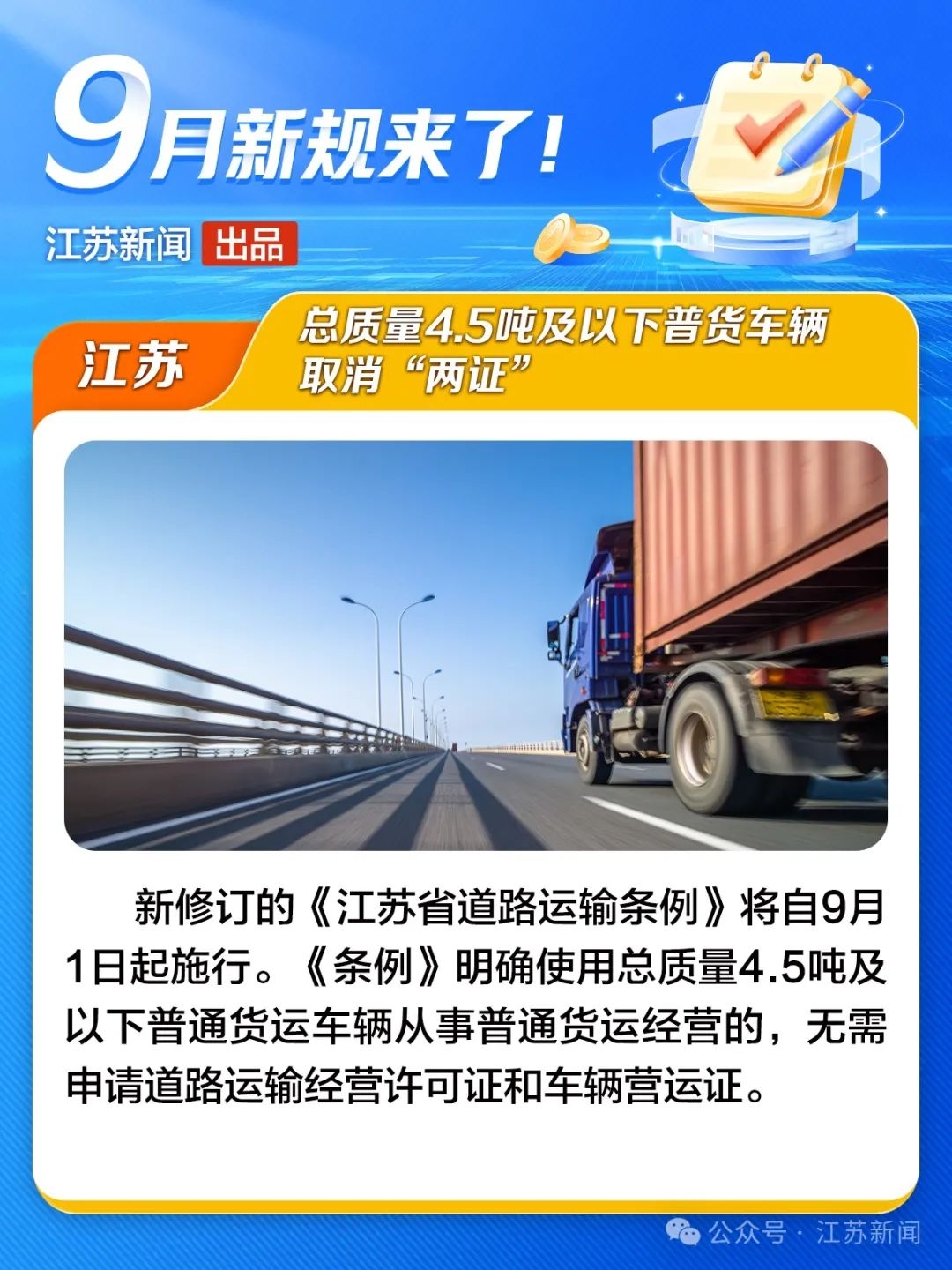 9月江苏省内新规如下