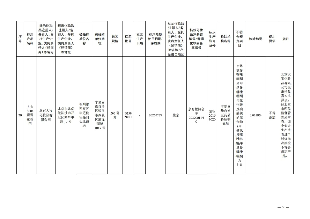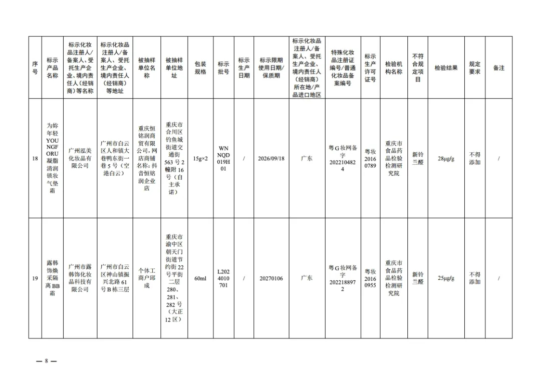 20批次检出禁用原料的化妆品信息